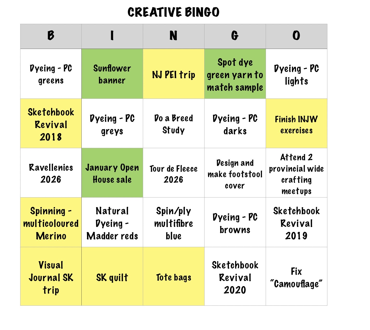This was hard! It was a challenge to balance my already established goals but make them work for a Bingo card and also hard for me to create more silly/easy/fun ones.