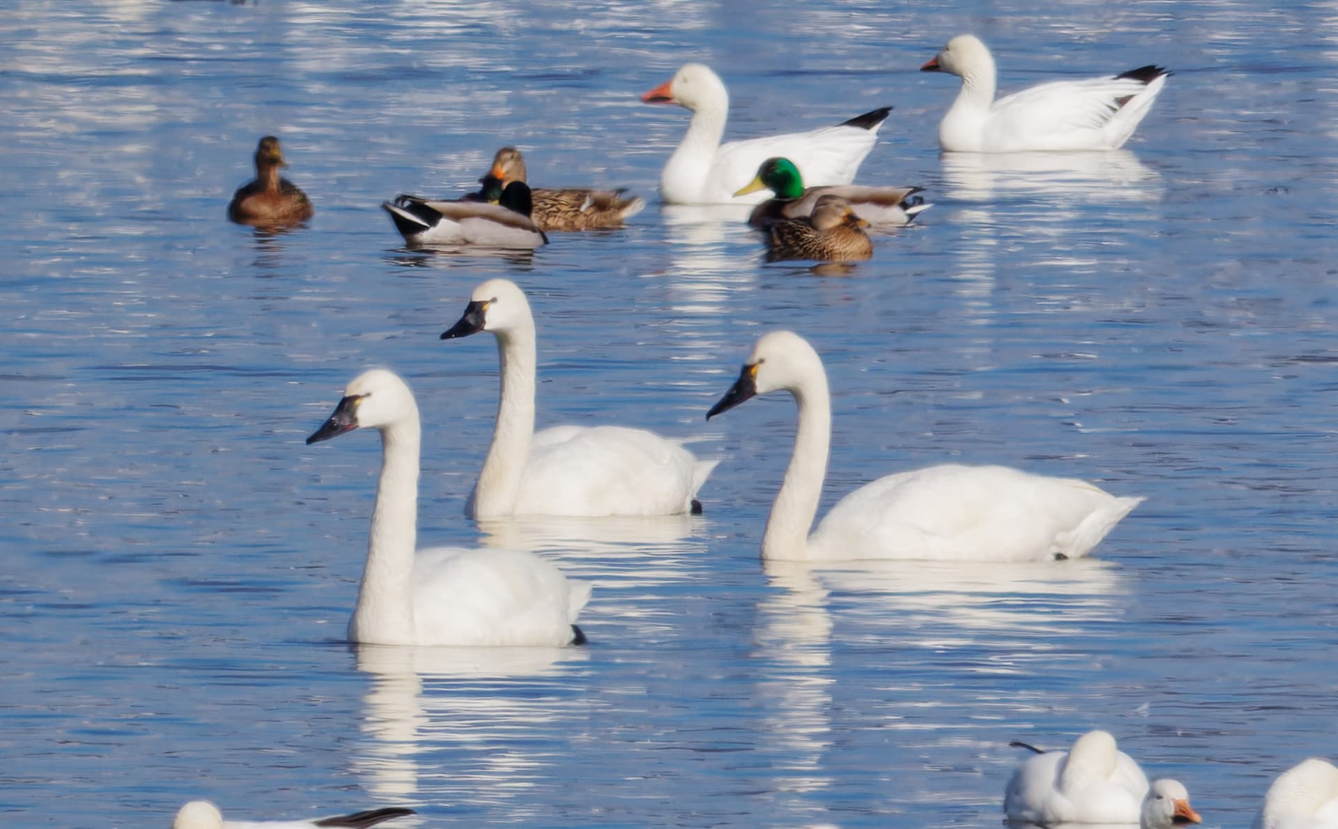 Tundra swans, snow geese, Canada geese. Mallards, American black duck