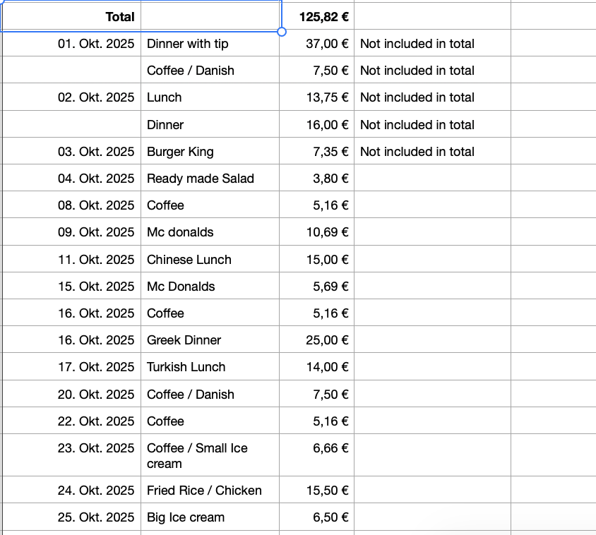 I am still pretty well on track, I have 74 Euro for eating out in the last week of the month