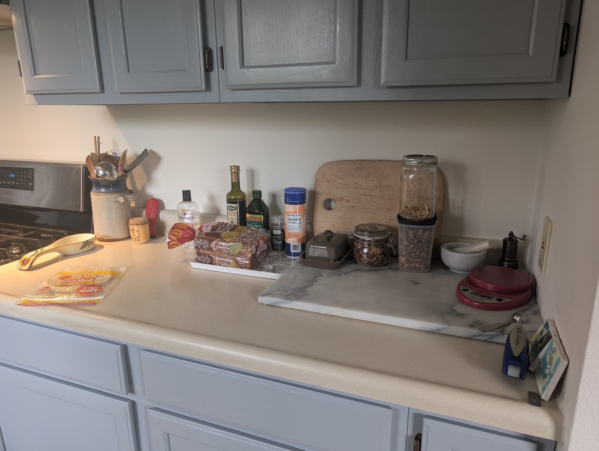 Usually itās piled high with random food items and crap. Instead, things are now in cabinets or, in a few cases, tossed. Now I feel better about having people in my house tomorrow.