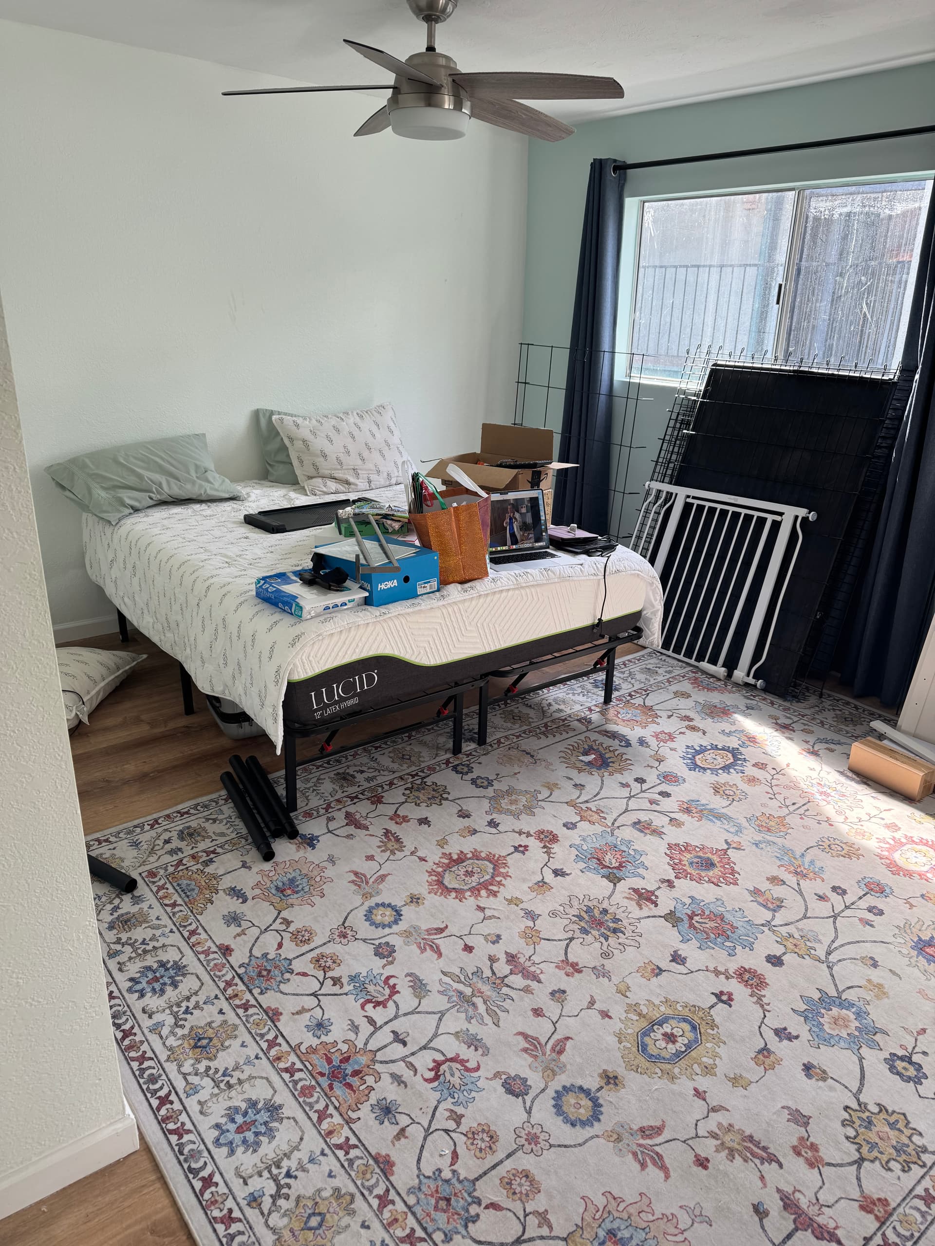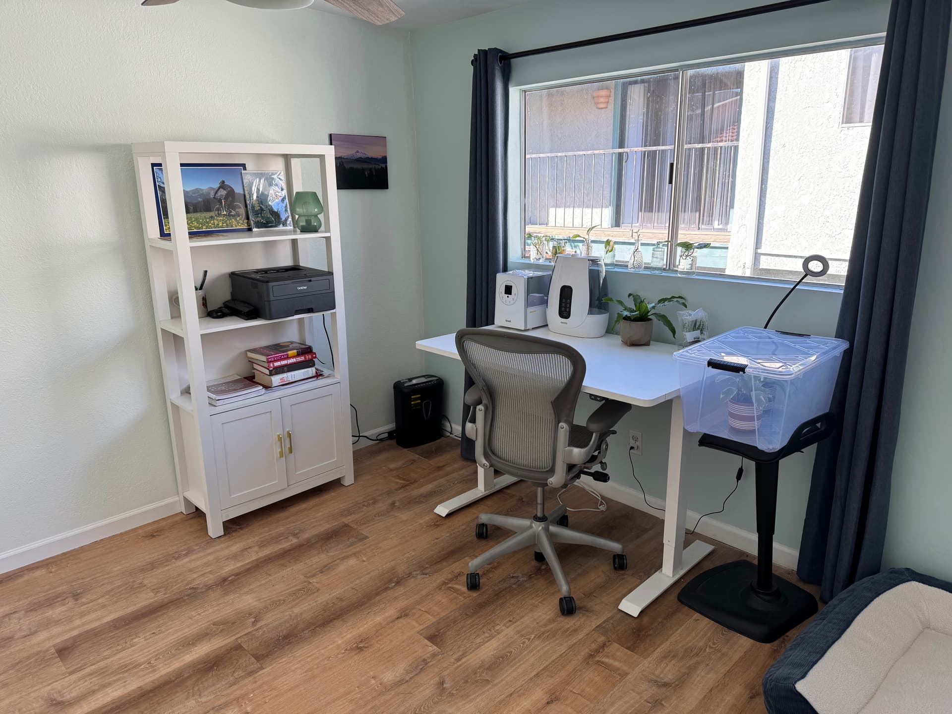 I finally decluttered and rearranged my guest room! It had become a landing place for anything I didnāt want to deal with or didnāt want in the rest of my house. But, I have a friend coming to stay in April and I wanted to make it a cozy room that also has an office corner. It took me about a month to move things and build furniture that had been sitting in boxes for way too longā¦the room is so much more functional, and now I spend a lot more time in there because the āofficeā has become a plant rescue space with humidifiers where my ferns are fighting for their lives in the desert