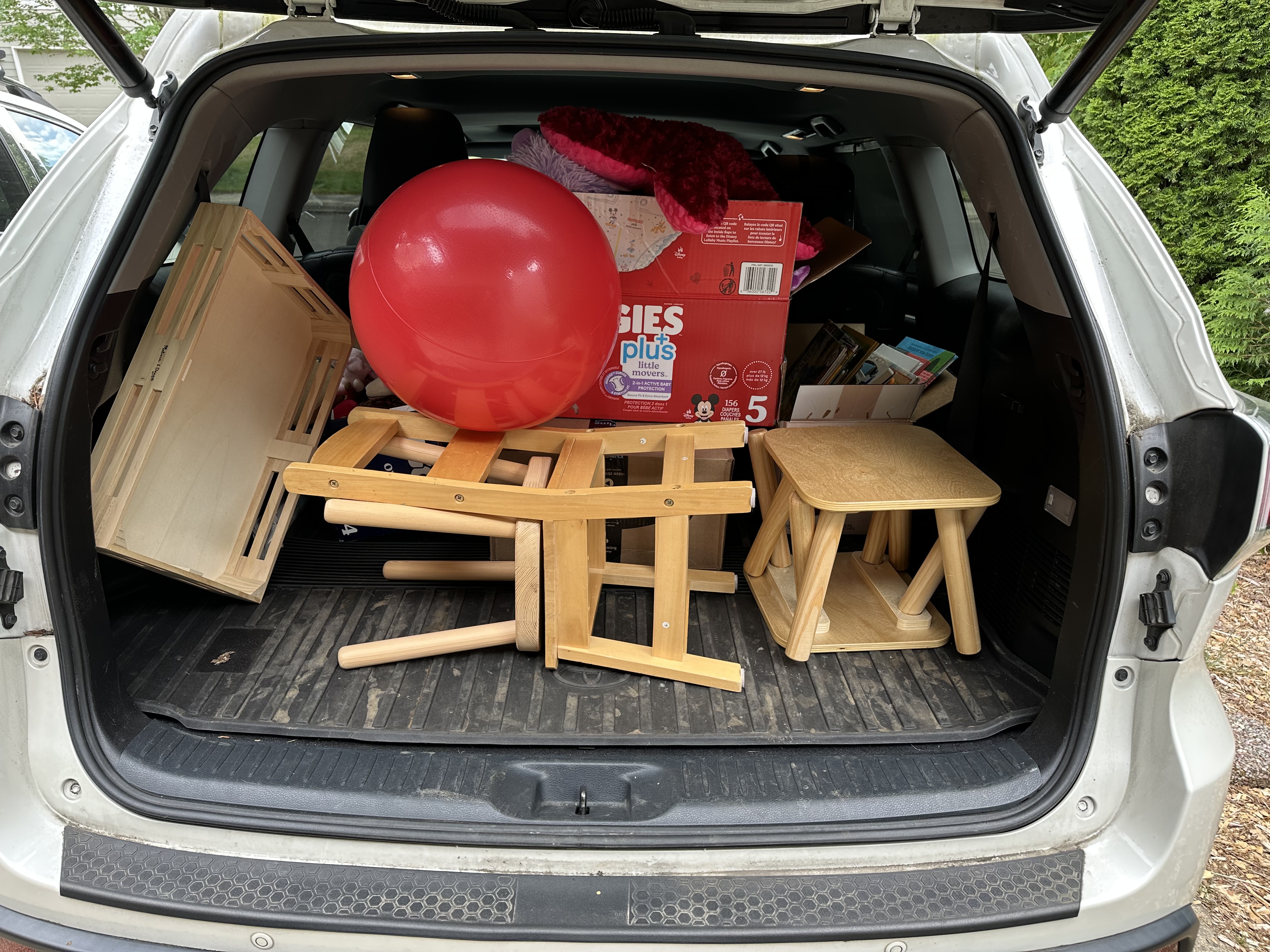 6- oh and I finally donated all the toddler size chairs and stools. She just uses them for Sheer Chaos, just like her sister did, and I’ve been hiding them in closets and stuff. Literally no point still having these. She can stand or squat for art, that’s what they do anyway