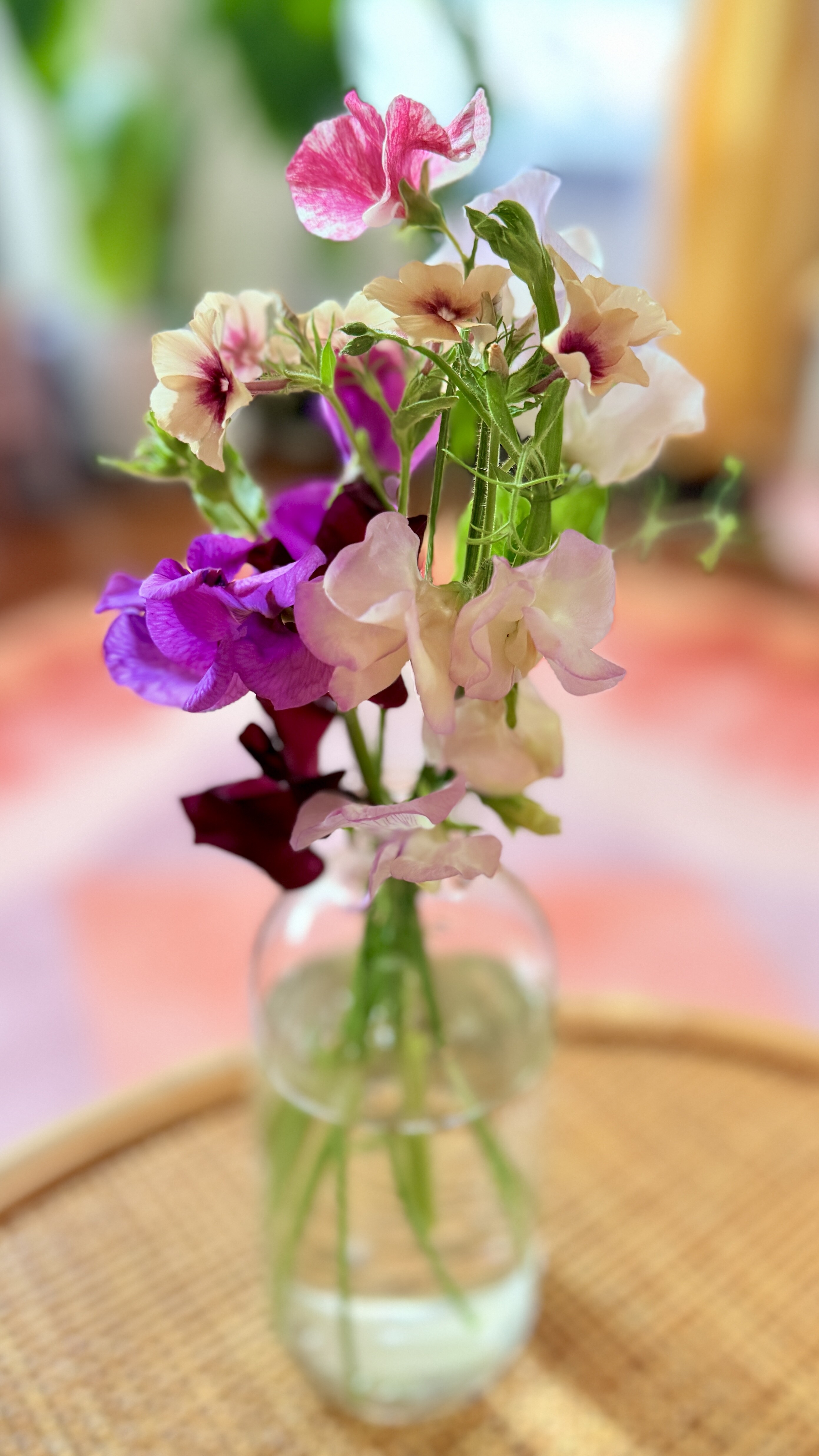here are my brave baby snapdragons after a few days in the vase. i have about this many more to harvest today, plus some sweet peas and some cherry caramel phlox.