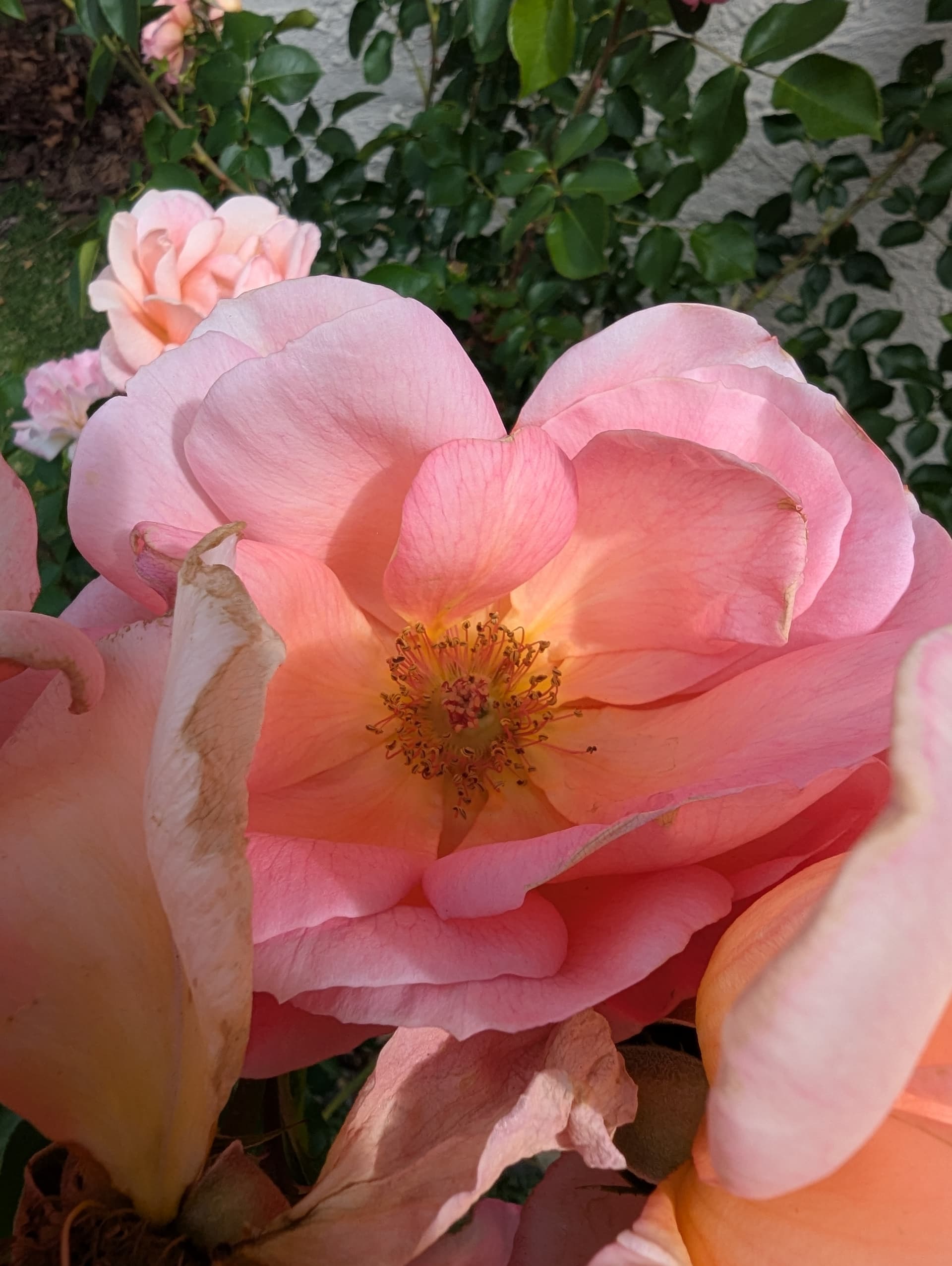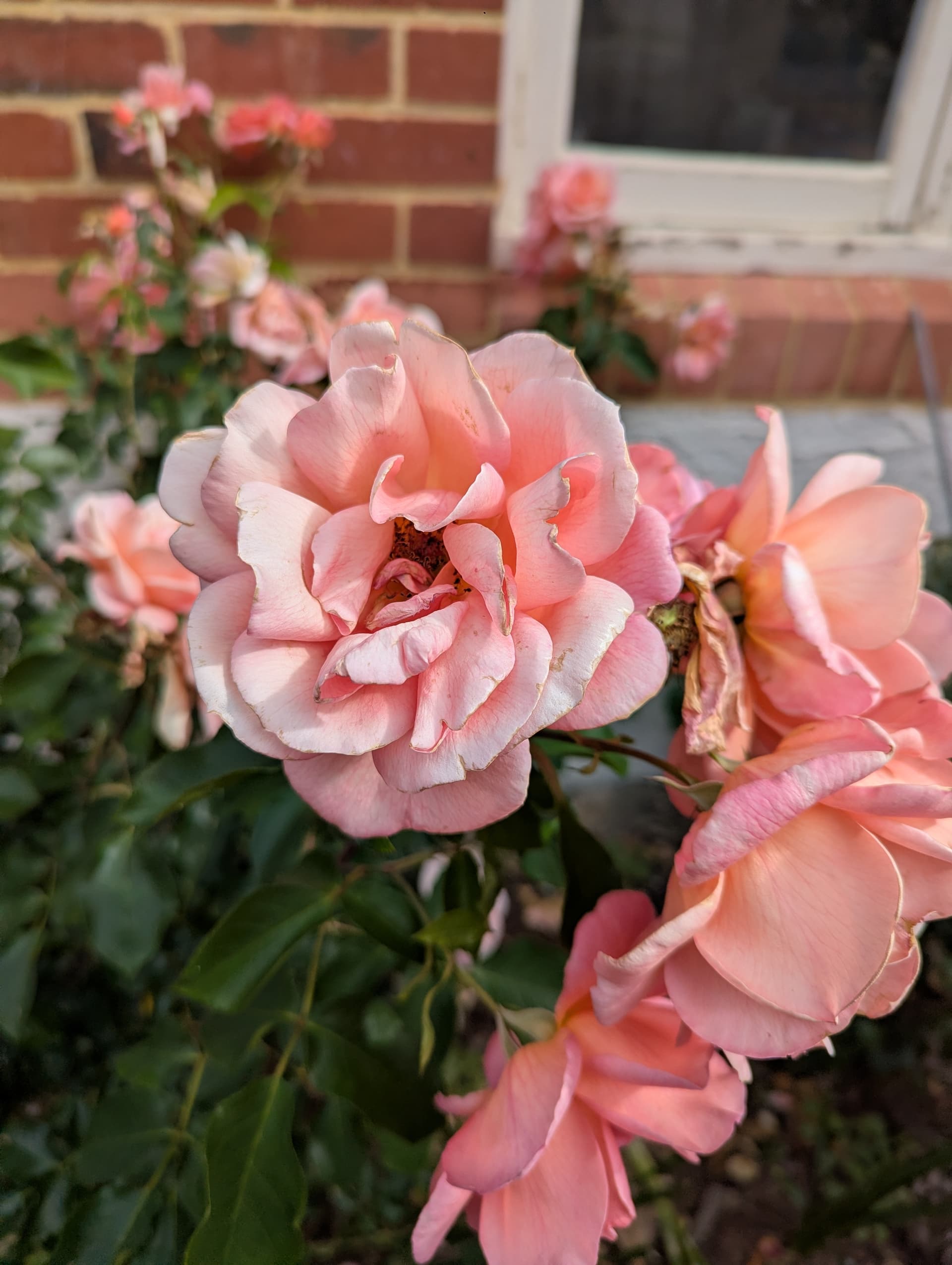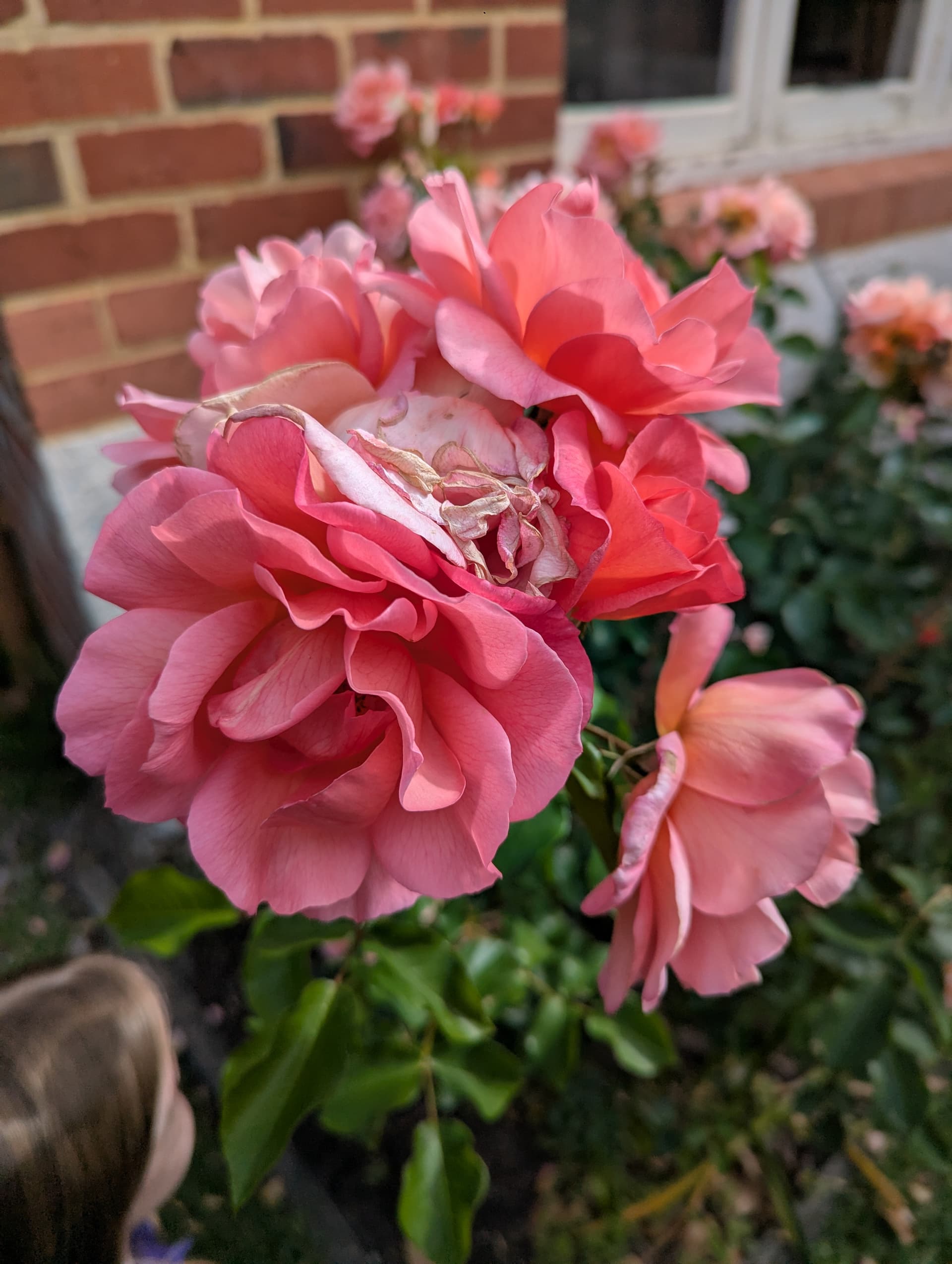 A neighbour’s roses. These had beautiful orange & peach hues mixed with the pink that the camera couldnt capture.
