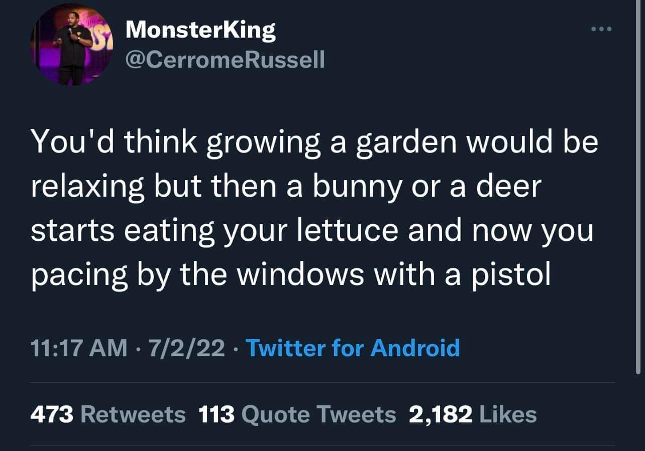 I’d much rather grow a tiny bonus garden for the resident critters than Elmer Fudd it up