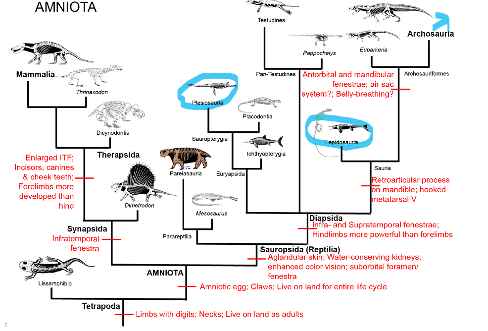 Here’s a (stolen) simplified clade; plesiosaurs are in Plesiosauria; Mosasours are in Lepidosauria (as are modern snakes and lizards), then dinosaurs (and a whole bunch of other shit) are in Archosauria: