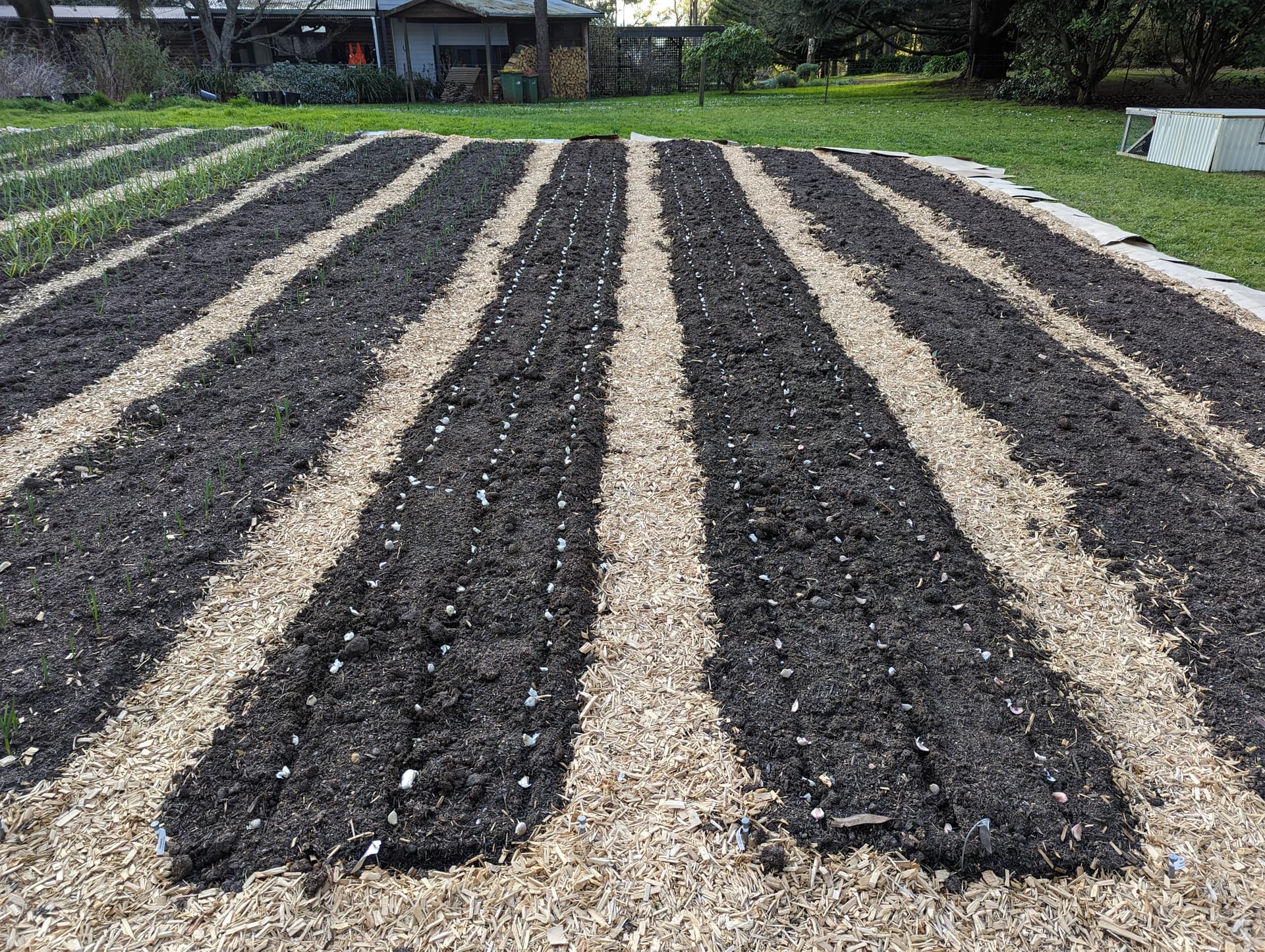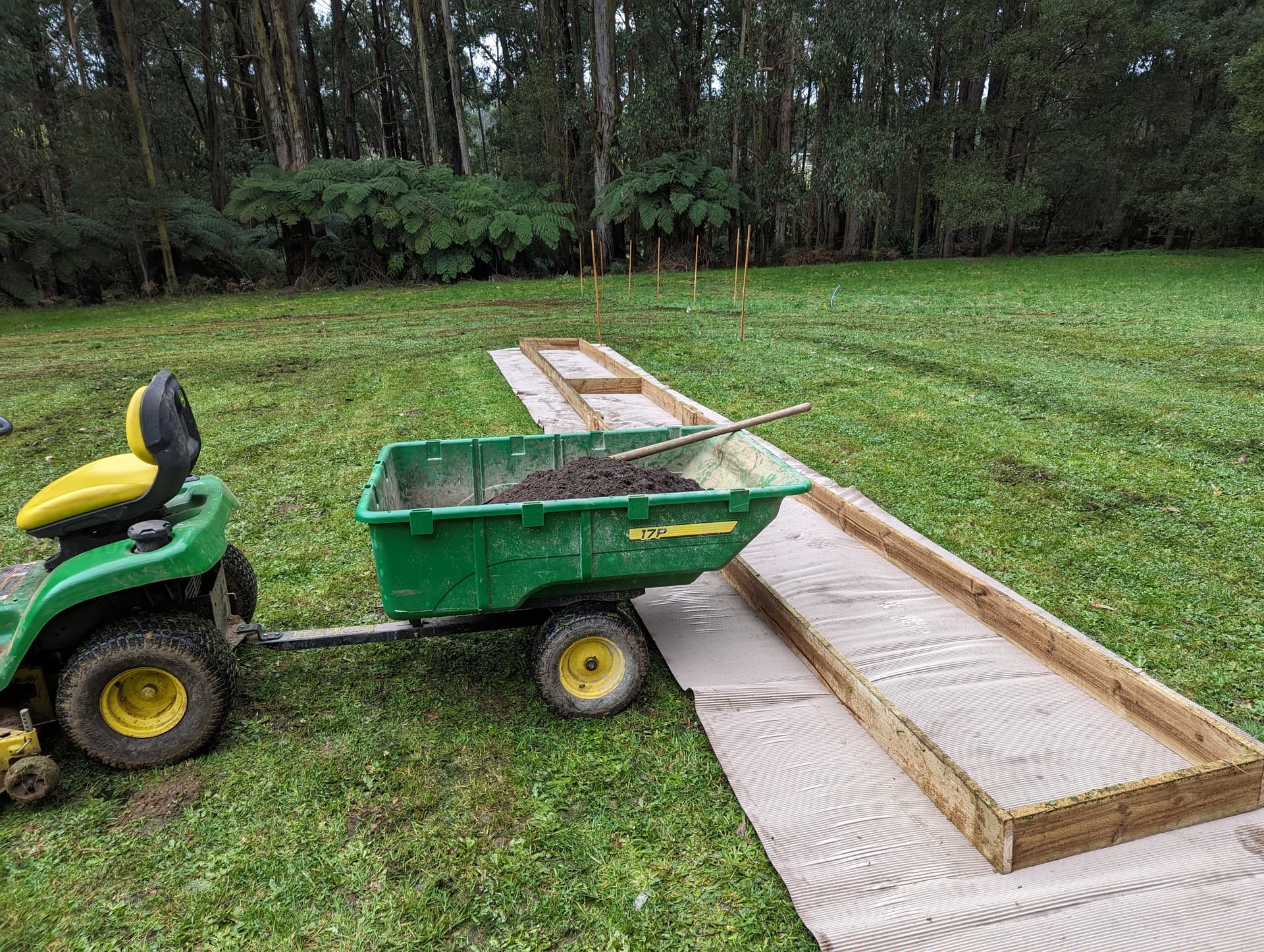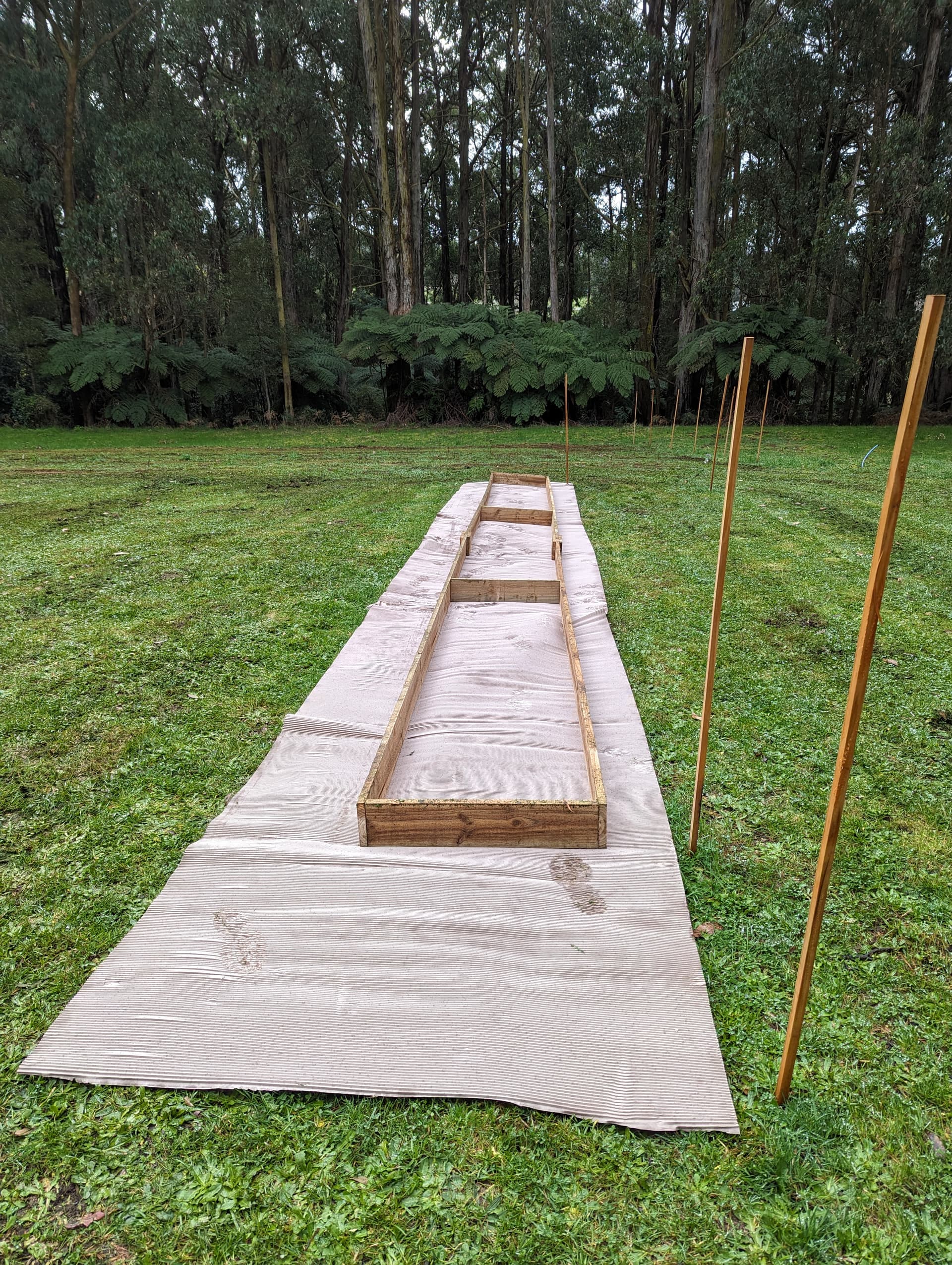 You can also just put dirt/soil/vege mix down on top of the cardboard where you want the garden beds to be and use the chips from the chip drop to make the paths.