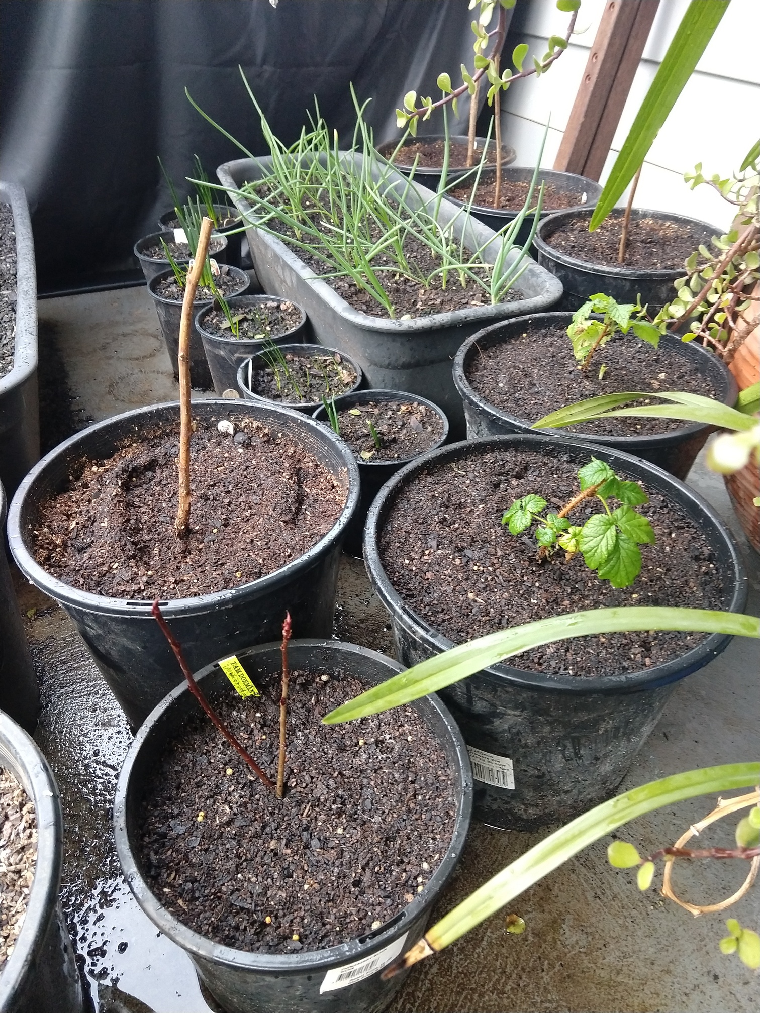 Coho (late summer ripening) and Nootka (twice a year, mid summer and autumn ripening) raspberry canes have been planted, watered, worm wee’d and are sitting out in the drizzle.