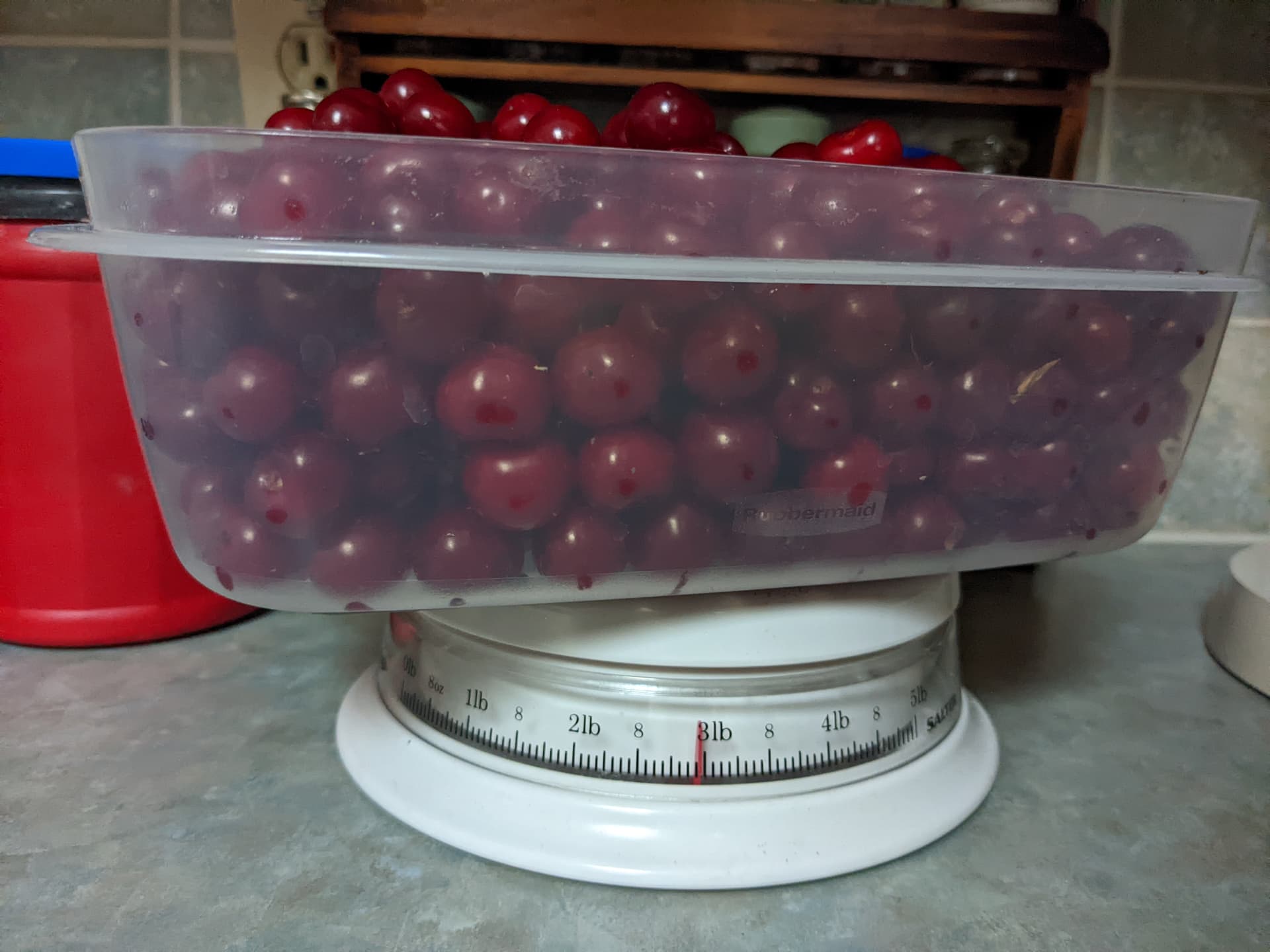 I haven’t planted much of a garden the past few years. Fortunately I have some perennial things. Today I picked 3 pounds of tart cherries and there are many more still on my tiny tree.
