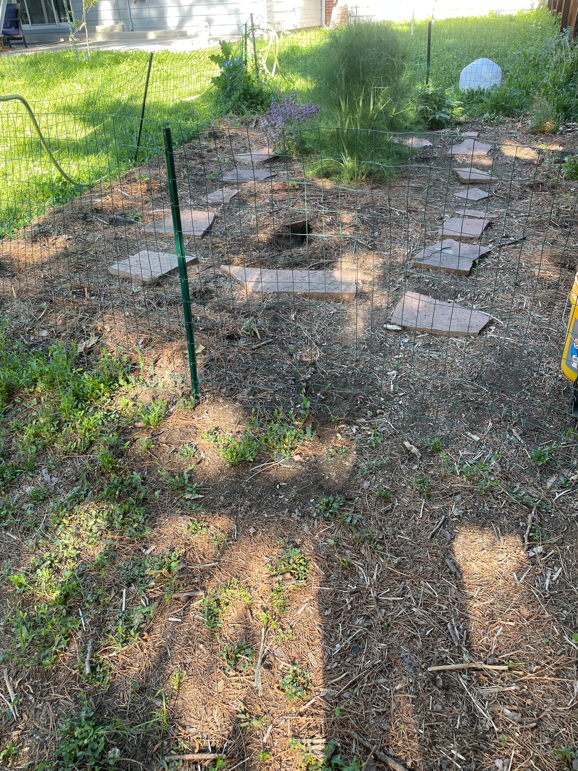 I’m doing some watering for my neighbor while she is out of town, and she has this cute fenced off area for her veggie garden. Unfortunately, a bunny has made her burrow in the middle of the fenced off area. These buns!!