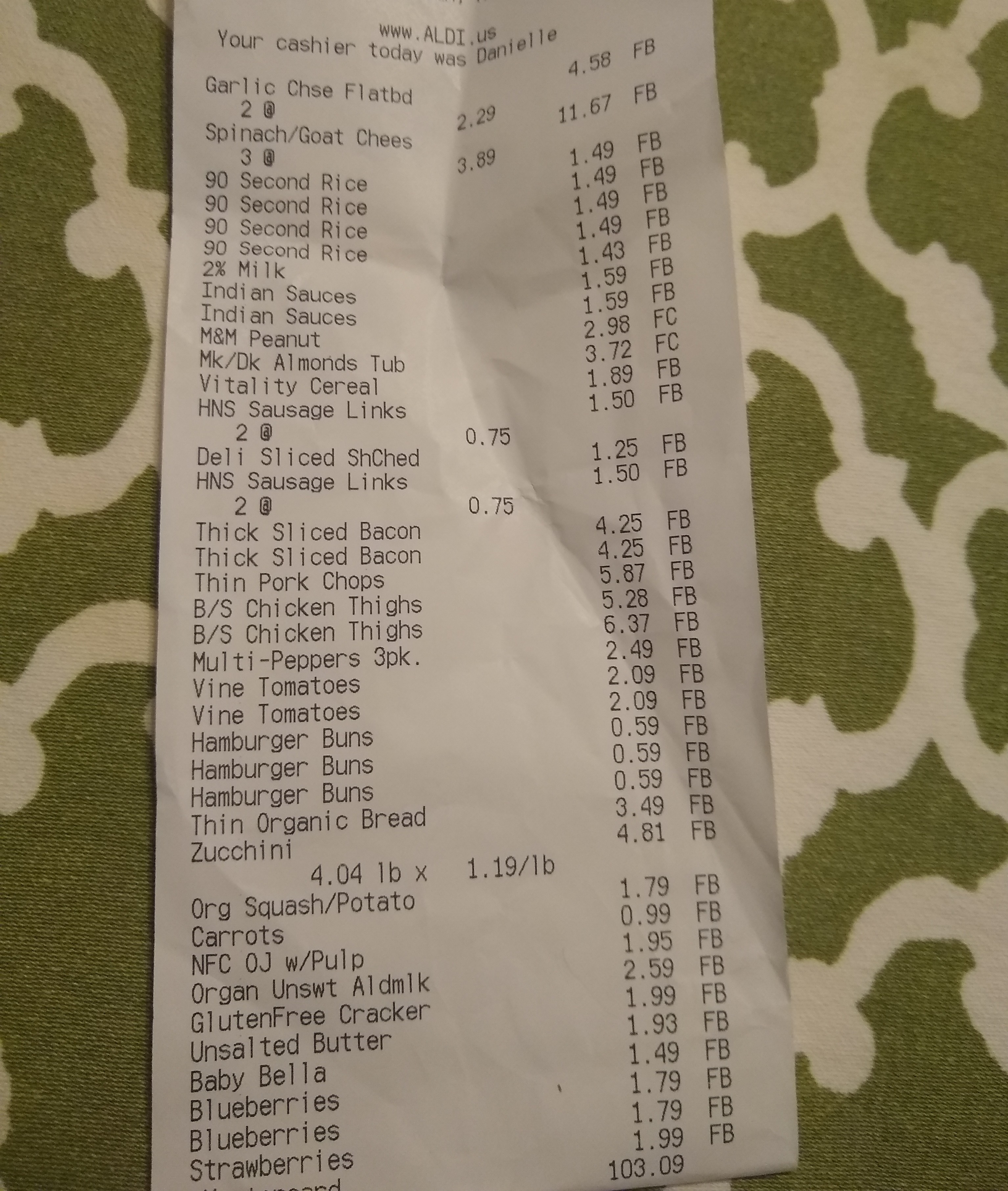 Just got back from Aldi myself. I only had about $80 left in the grocery budget but spent $100. Hopefully this will get us at least a few days into next month, maybe even the 7th?