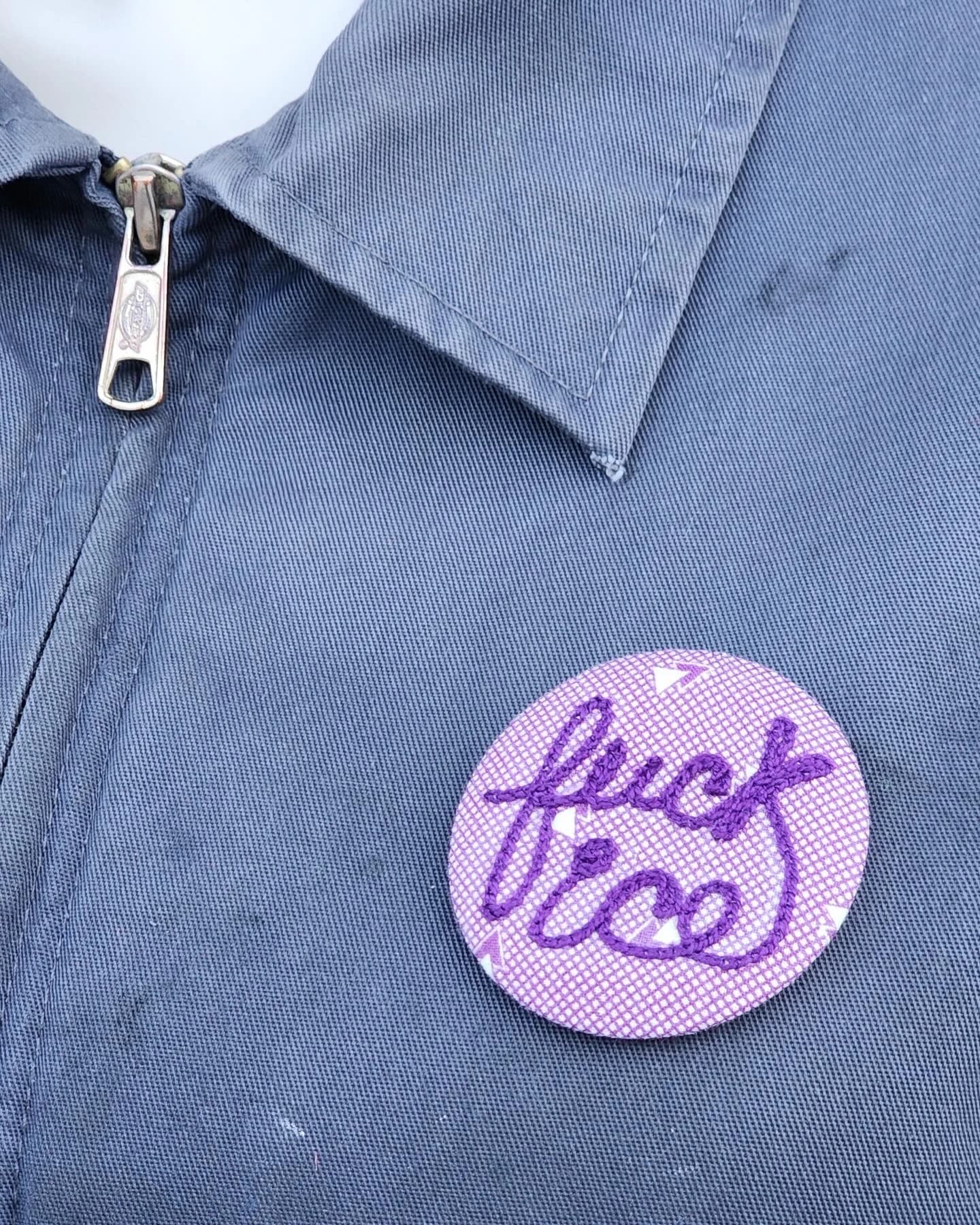 The first 25 people who donate $50 or more can receive a free embroidered FUCK ICE pin!