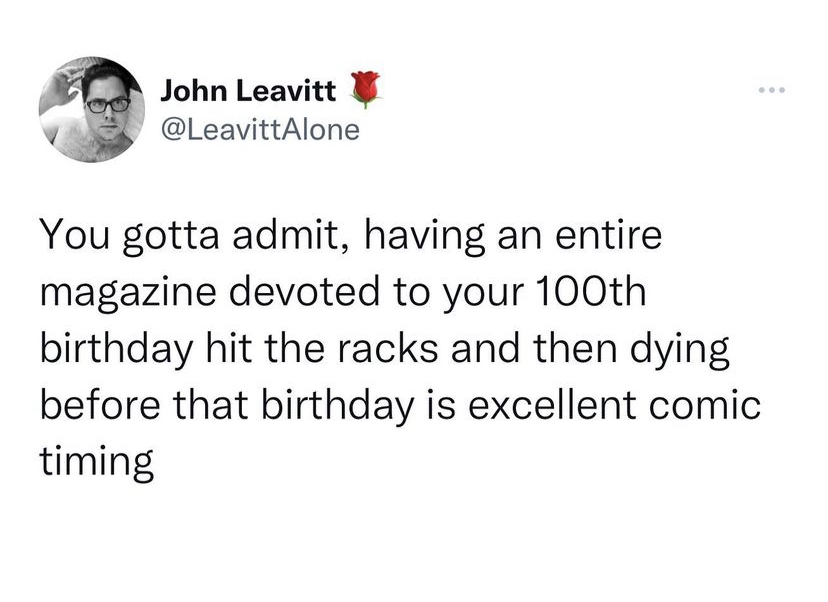 Seen in a tweet: “dude it’s fine. She’ll come back as Betty the Grey”
