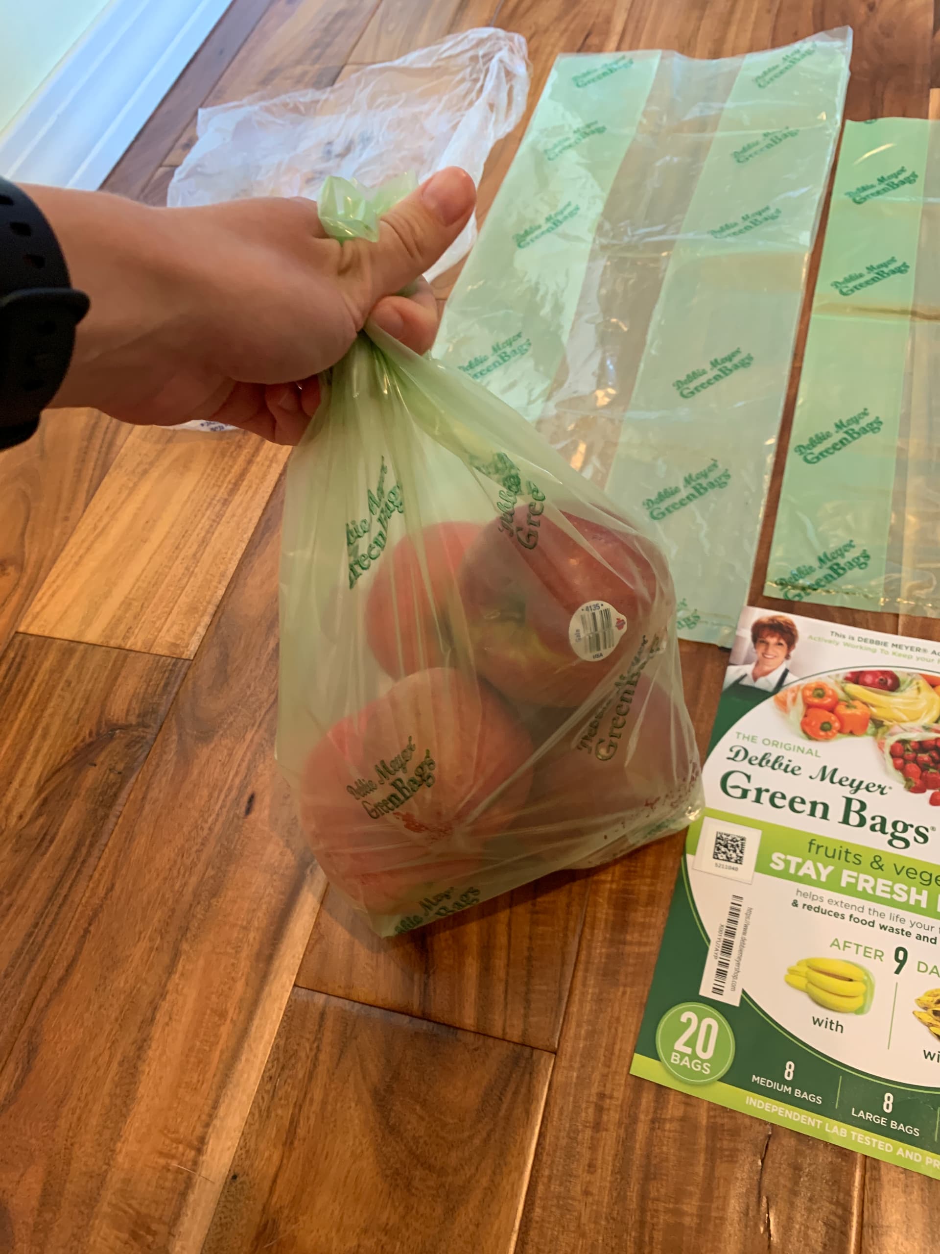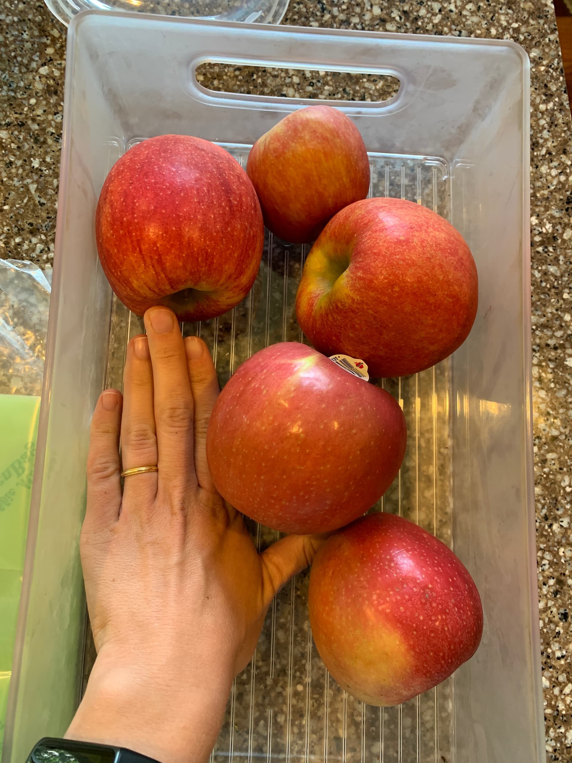 The medium fit all 5 apples with room to spare/plenty of room to tuck under them. The XL I use for big bunches of farm greens, the kind of greens bunches that stick out beyond reusable cloth book bags.