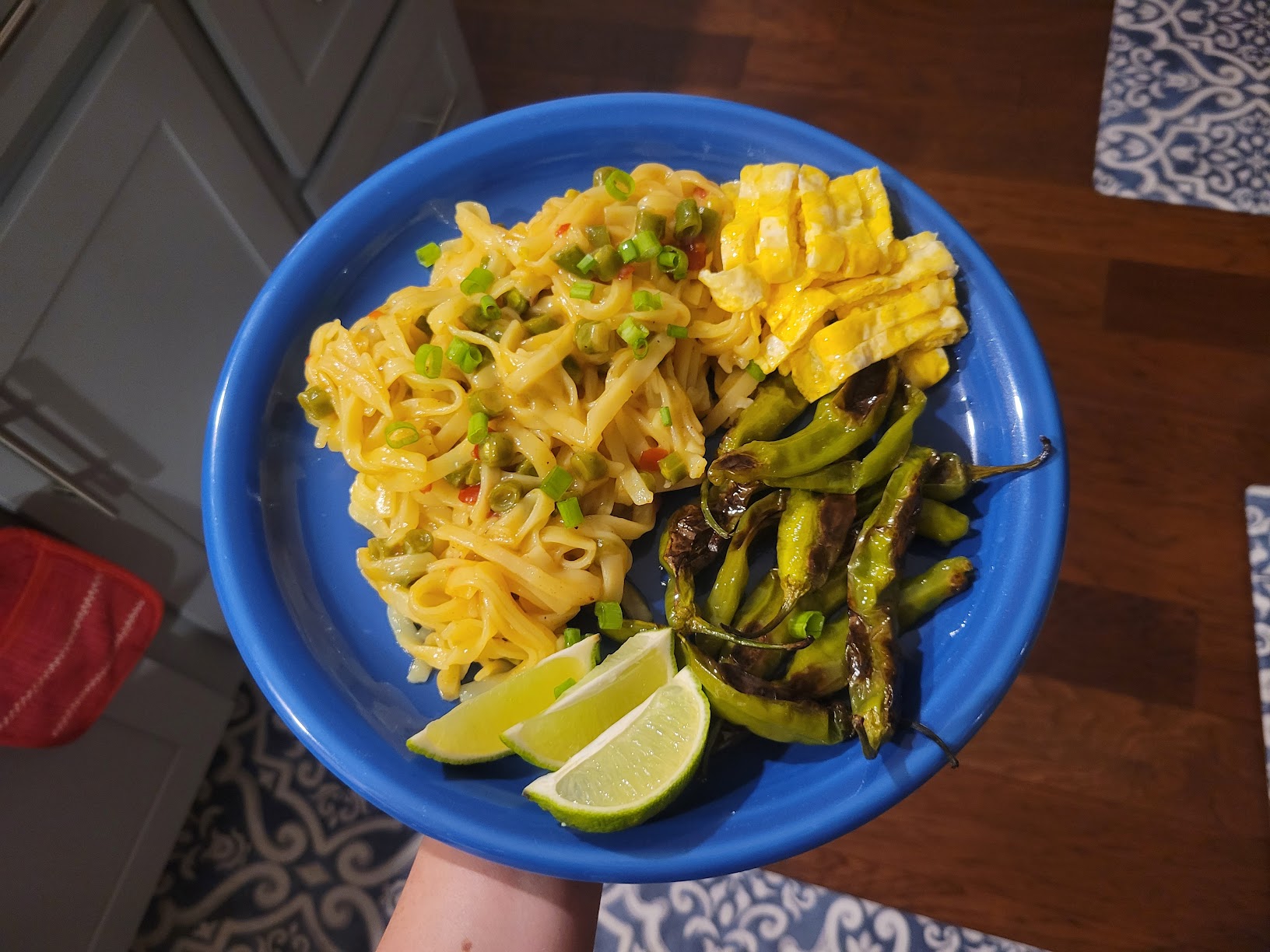 Wednesday: rice noodles, shredded lettuce, bell pepper, pickled carrot, egg ribbons (rebar pg 2)