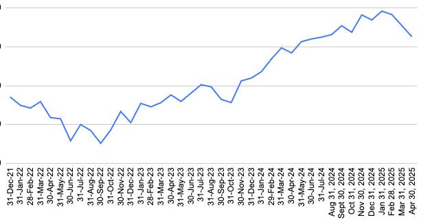 we fell back further to somewhere around Jan 2024, and then yesterday took us back to Apr 2024, but not ticking us over the line that was first crossed May 2024.