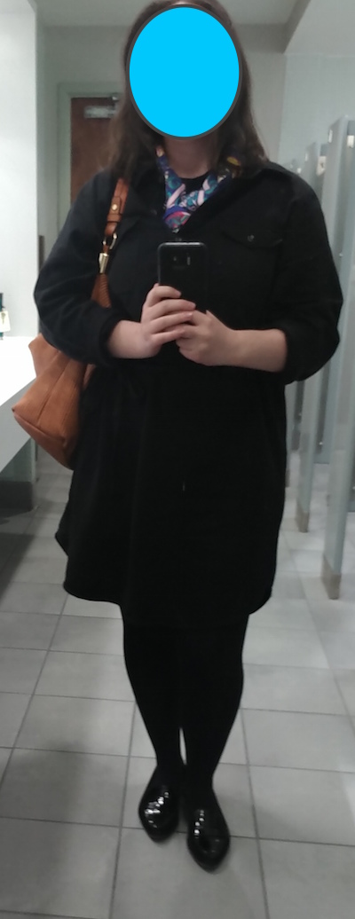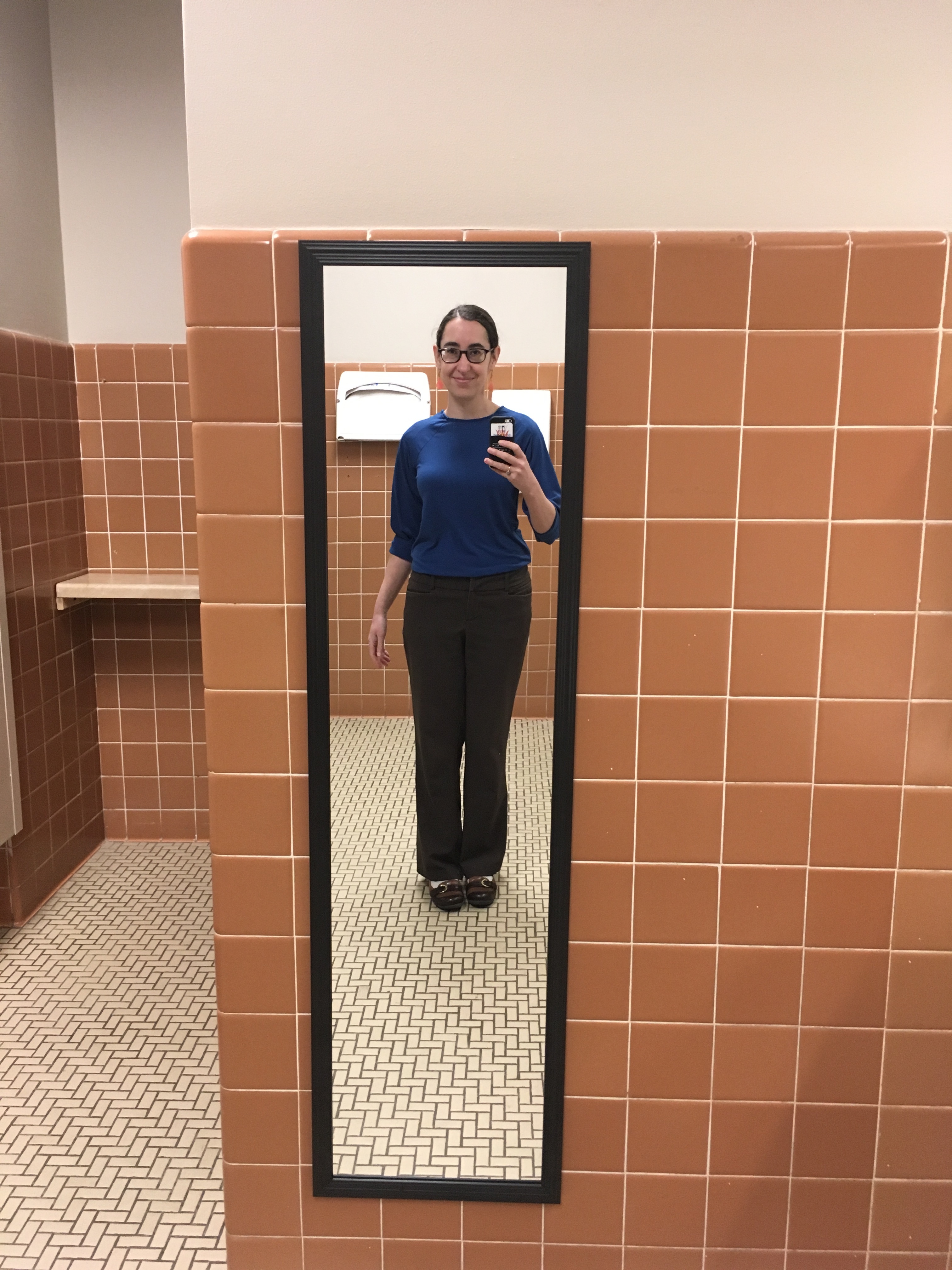 I’m not good at selfies (yet) and I don’t have a full length mirror even at work. But here I am in my sweatered glory.