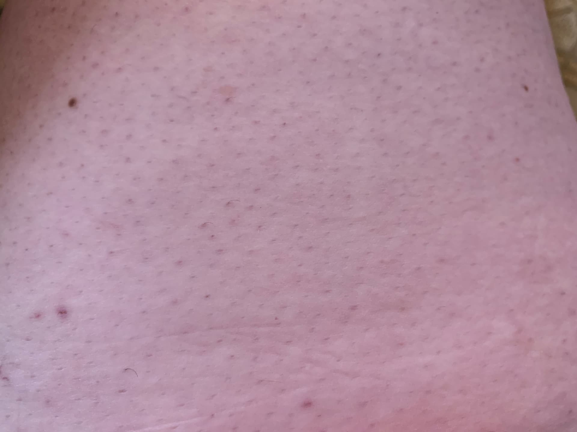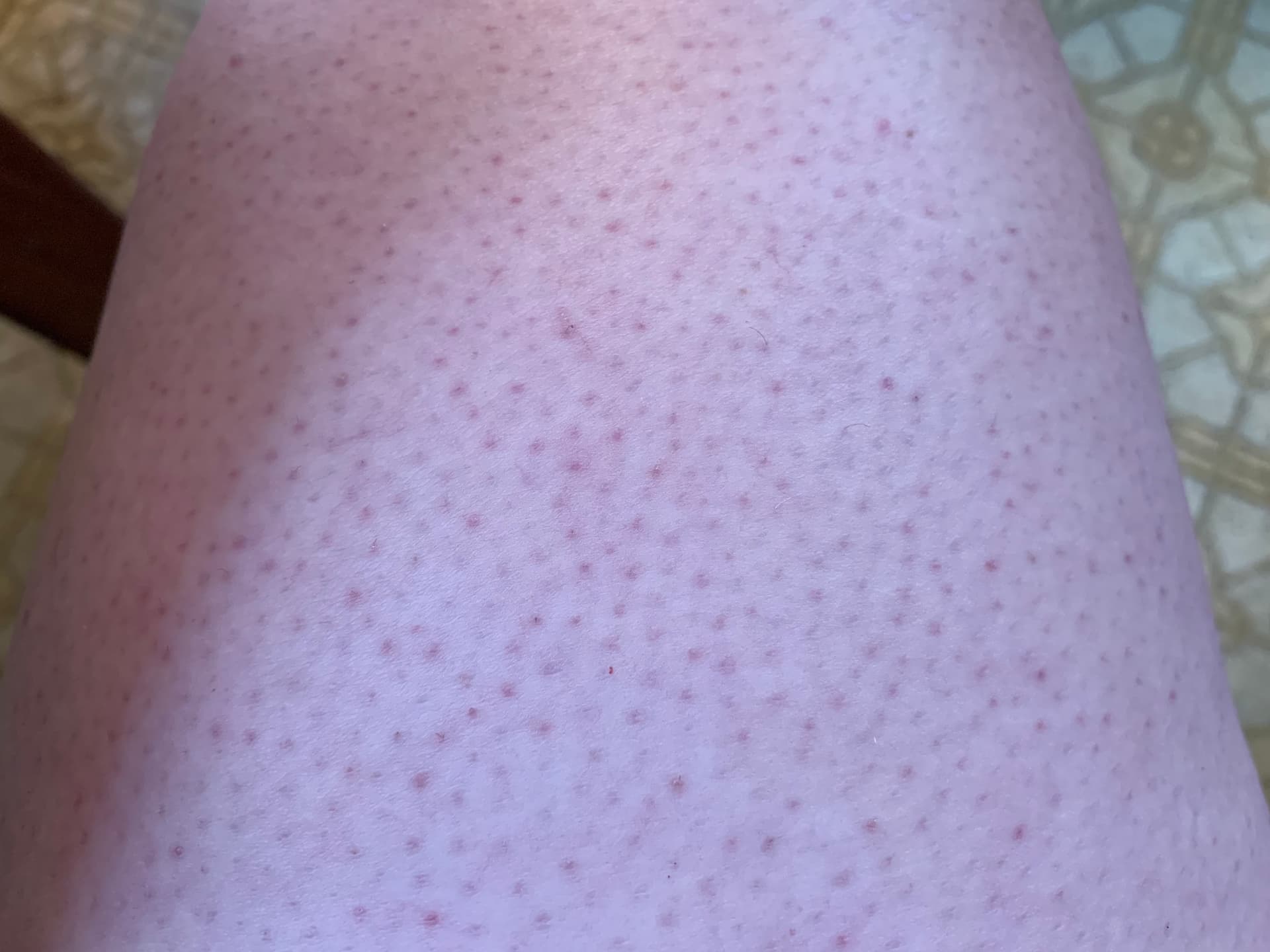 The worst spot is above my knee, but I’ve got some spots like this on my arms too. Further up my thigh it gets clearer, but there’s also less hair there.