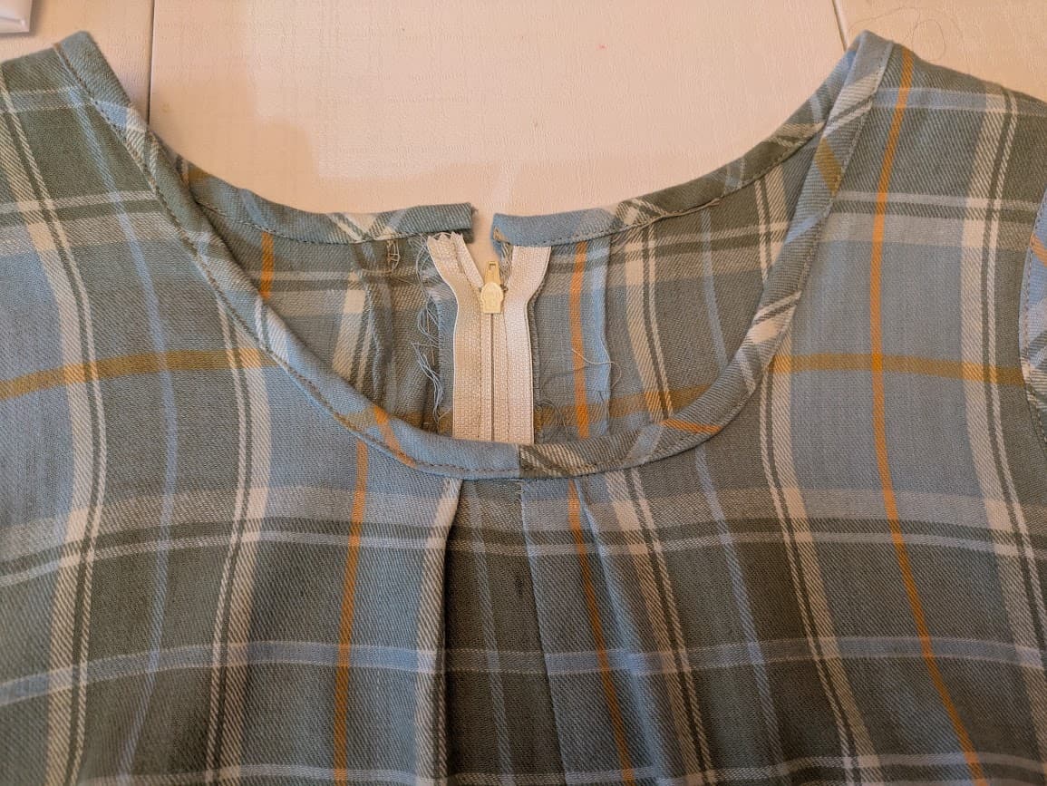 Last year I made a dress. I had to alter the pattern to fit my size. Something went a little wrong at the top. It gapped at the neckline, so I added some pleats. Crisis averted.