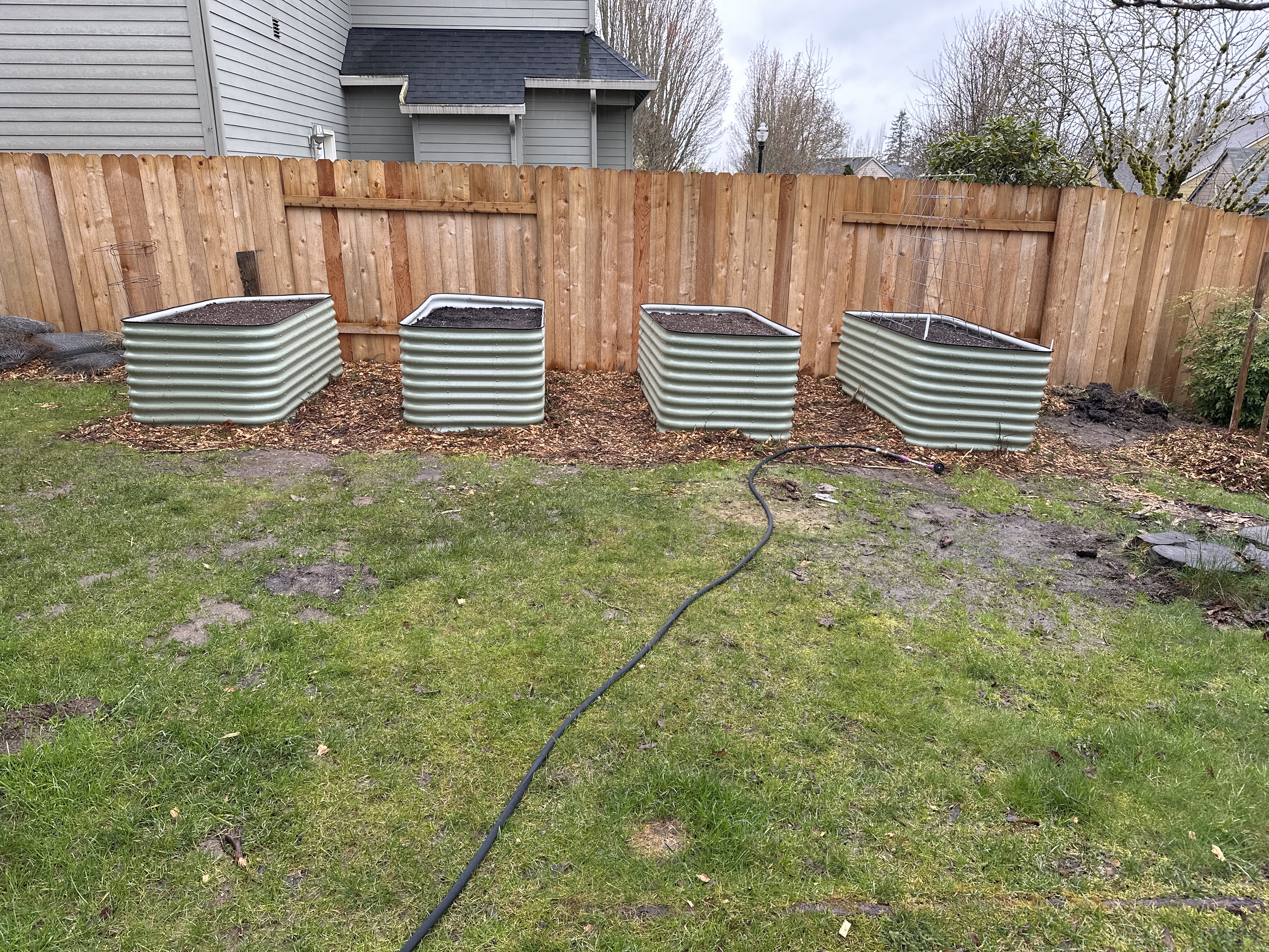 I mean, we normally don’t do much for bdays for each other but husband went big for me this year and headed a project to totally reconstruct our garden. Swanky tall metal beds, fresh soil, wood chipped in between, PVC tap trenched out to the garden and he’s about to install a drip irrigation system. Super splurge project lol. That’s gotta count! (It was a ton of work but looks so good)