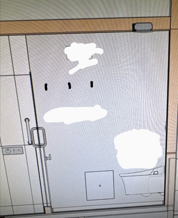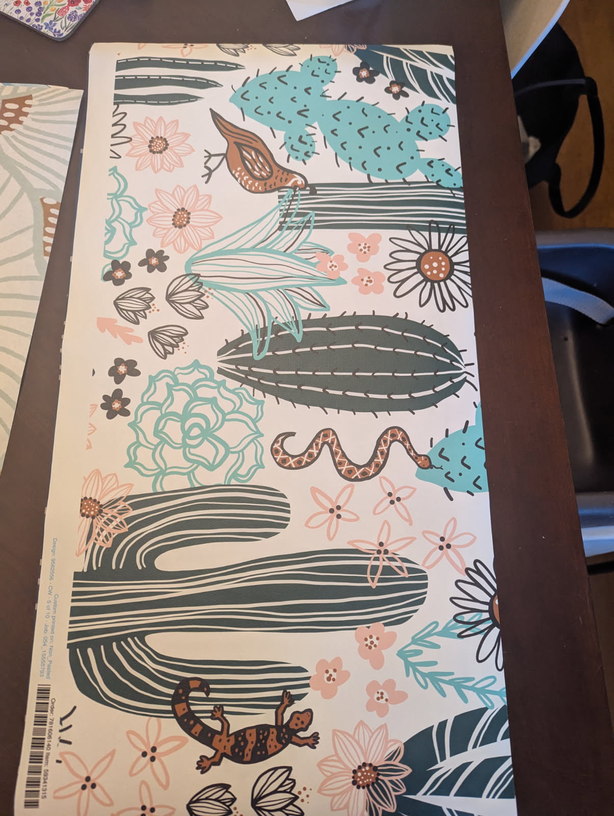 Black marks on the photo are towel hooks. Thinking about this fun Sonoran desert wallpaper (it has quails!! )