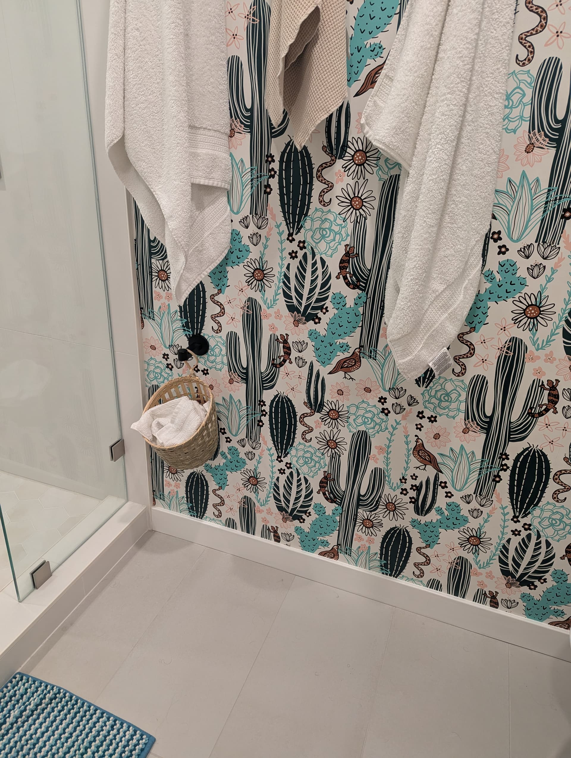 I love the you have fun wallpaper in your pretty new bathroom! And that you found a solution.
