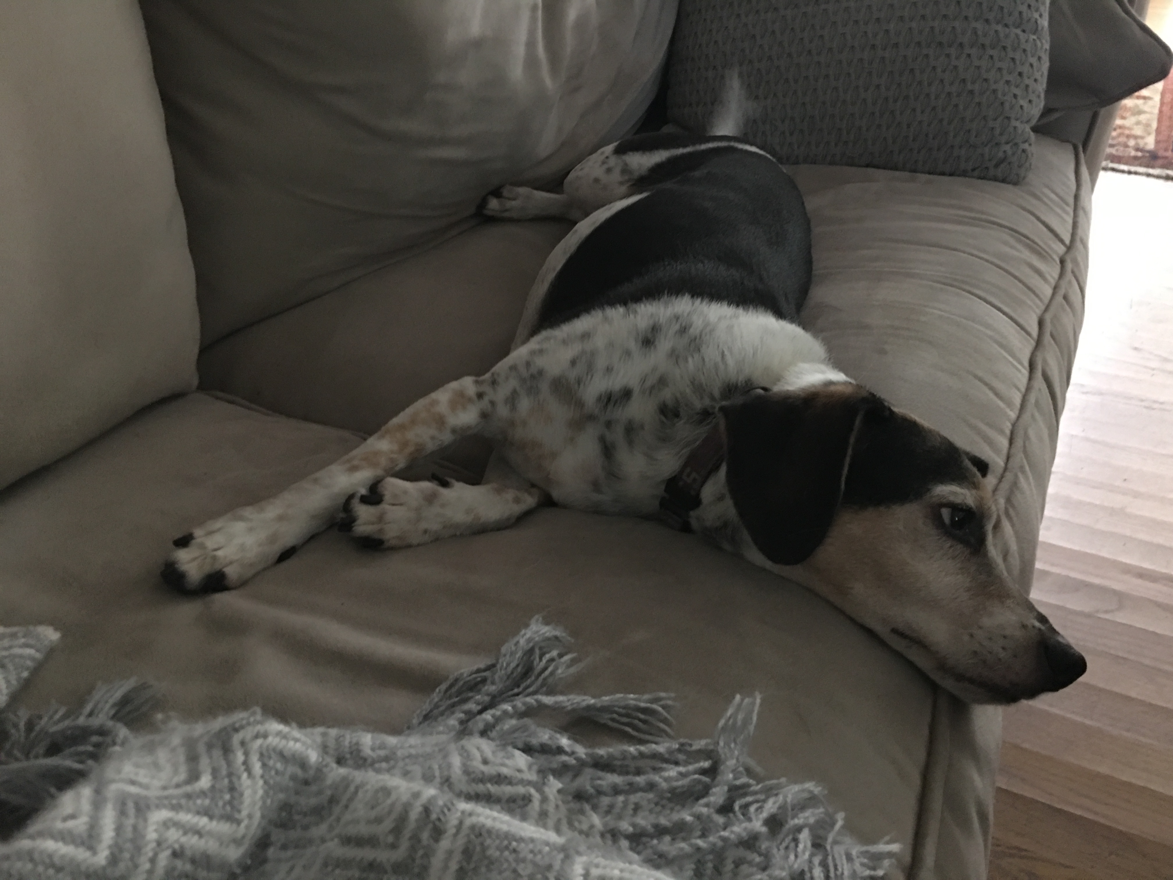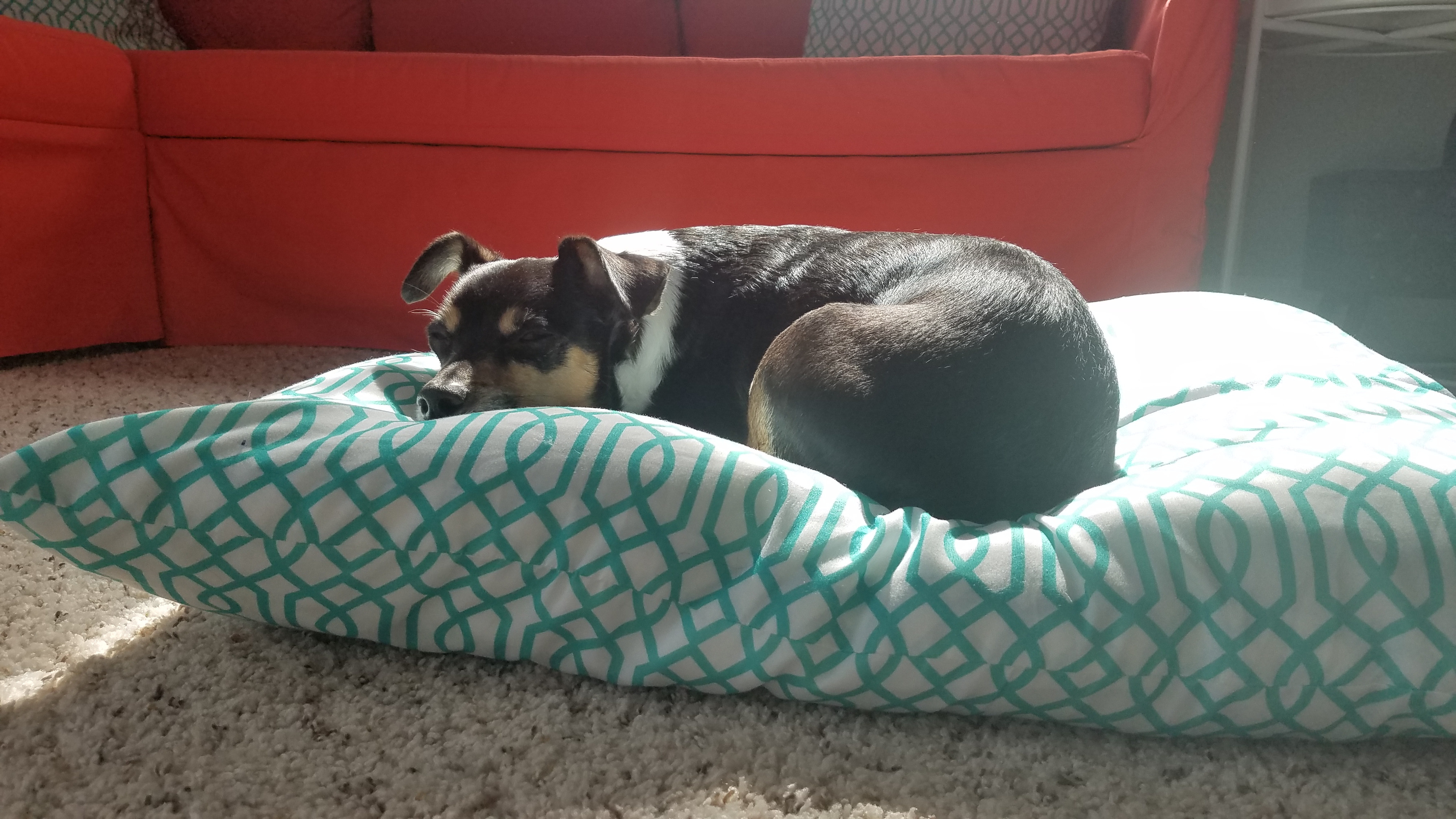 Luigi found a sunspot and then mommy very considerably laid down a cushion for him. Puppy bliss over here.