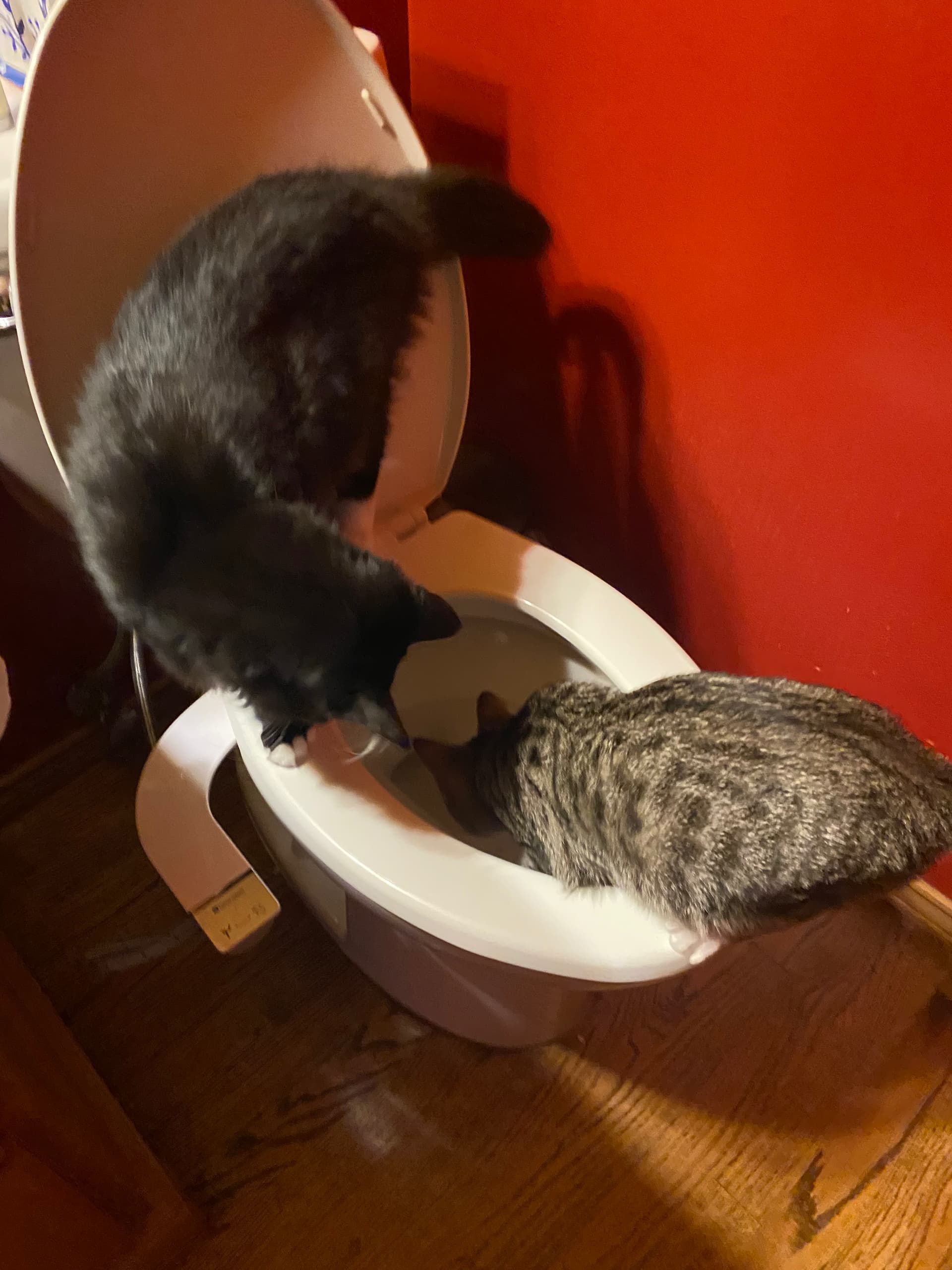 Mine drank out of the toilet yesterday because a family member left the seat up. I always have it closed.