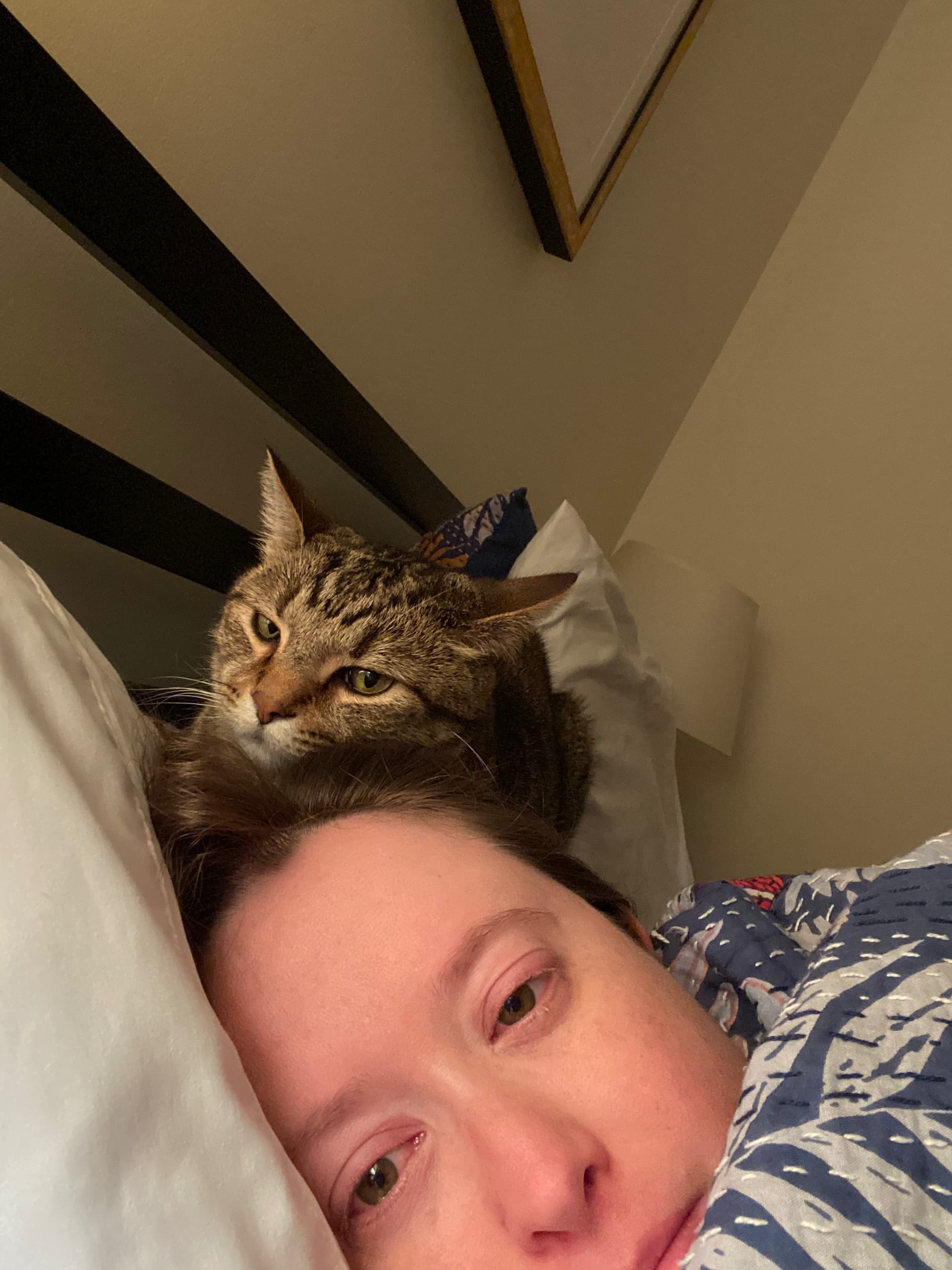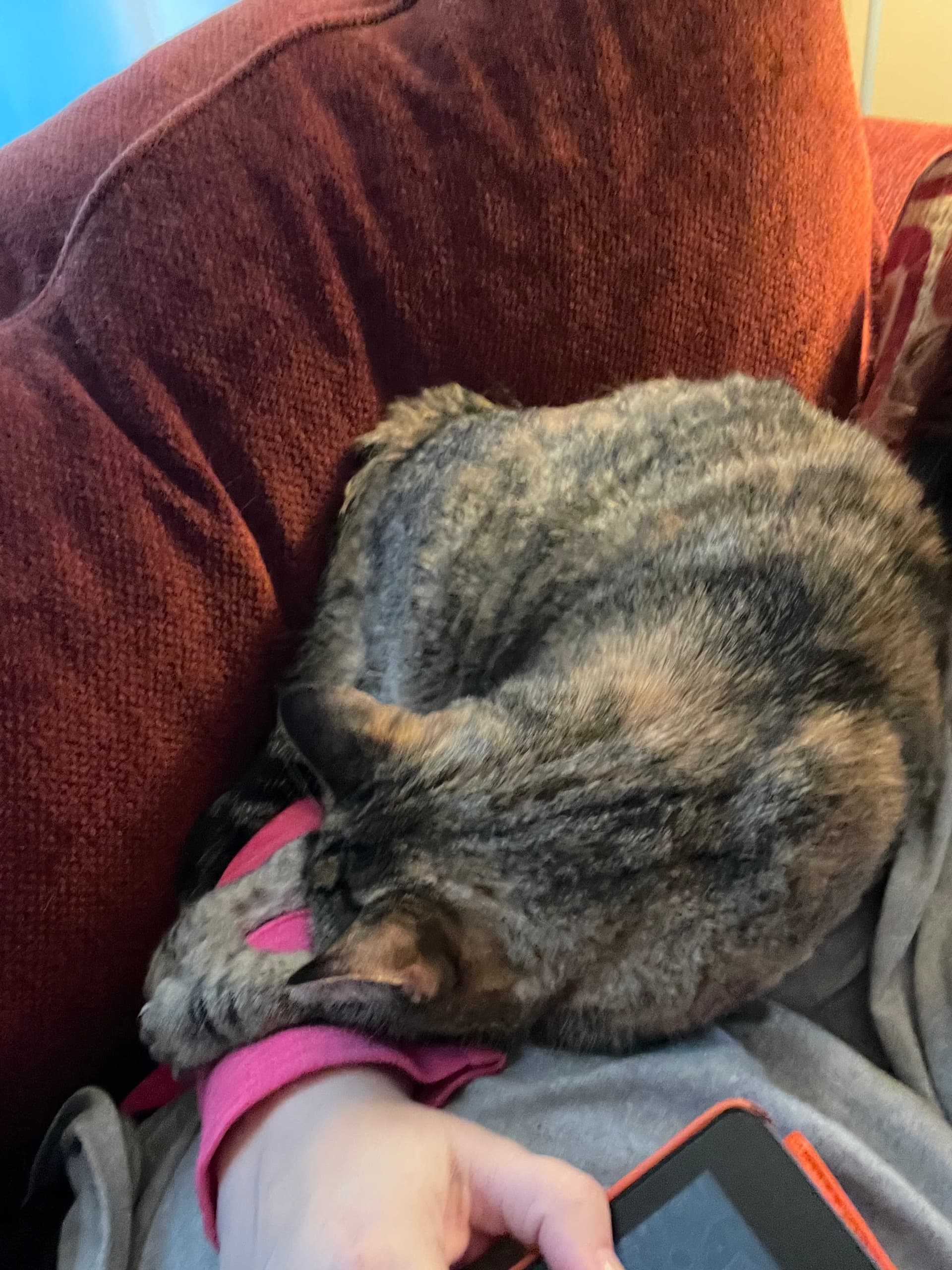 Miraculously, we seem to have lost one meatball and a few noodles. Most of the surface was protected by the silicone, which they pushed into the pot (instantpot). And the whole thing had gotten pretty solidified. So I dug out about an inch around the area of the hole and dumped that bit, and saved the unmolested spaghetti for the humans. We should still get three meals out of it (instead of four), which isn’t so bad.