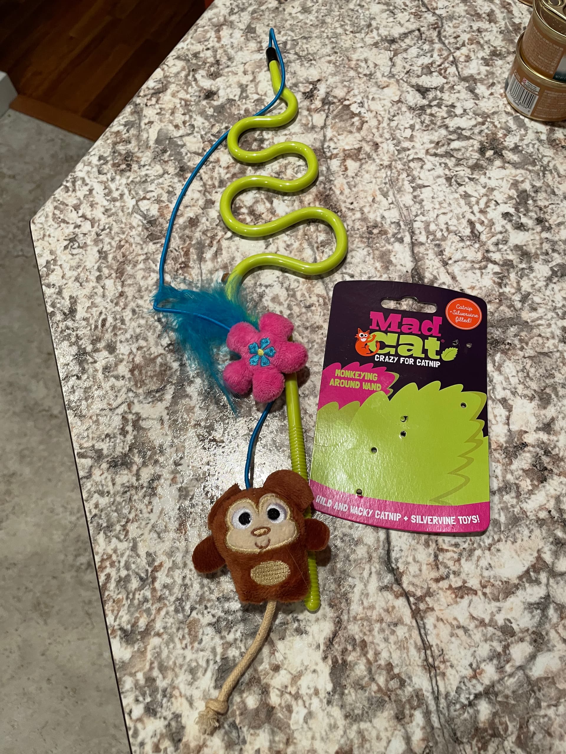 My cat really loves toys where the string is elastic so she can make it jump around like crazy. I haven’t seen any in a long time (they’ve all been regular string) and found this at Target tonight. She loves it so I thought I’d share.