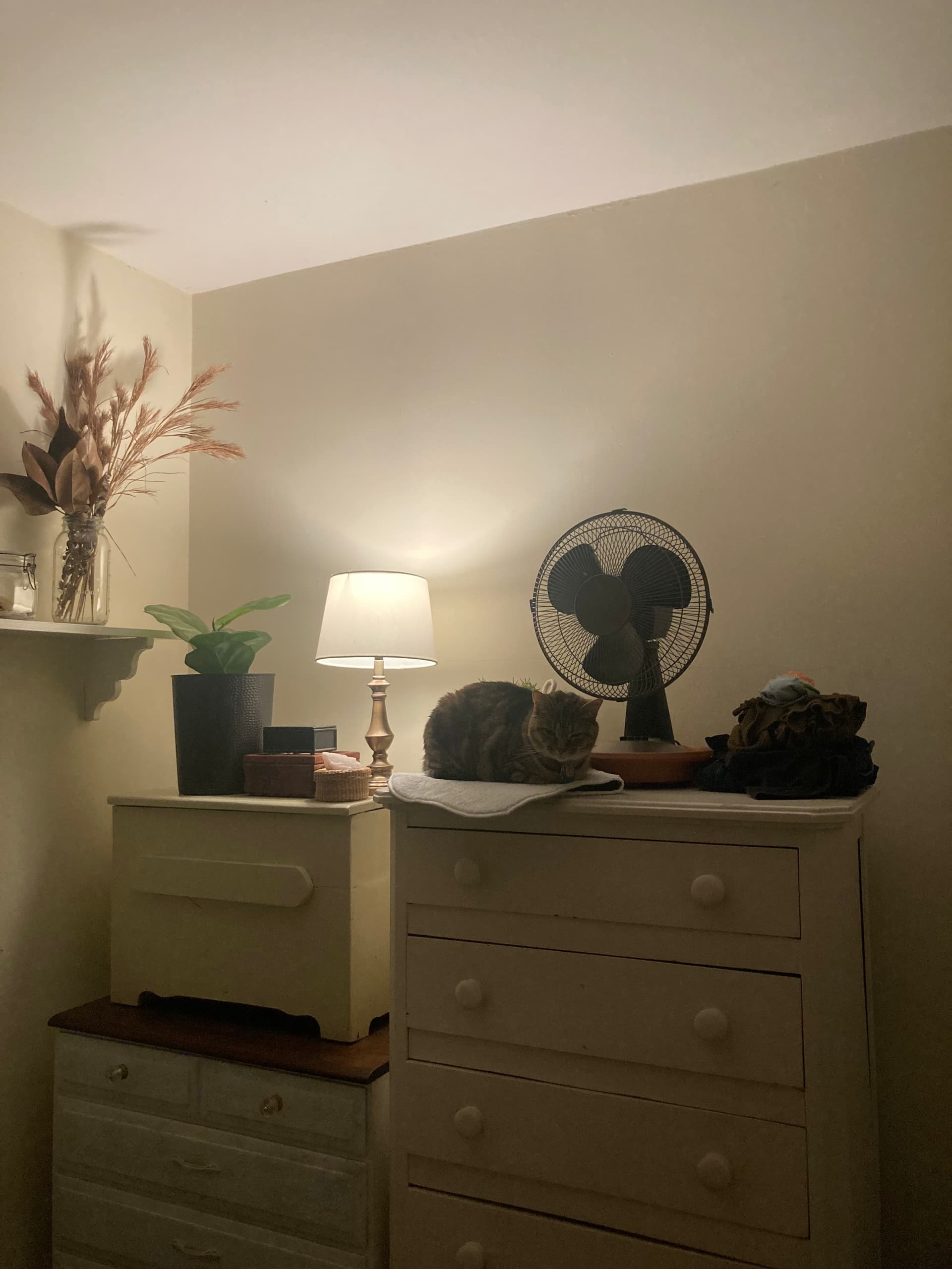 All days prior to today Maple has been restricted from dresser tops. Today? I’ve given up.