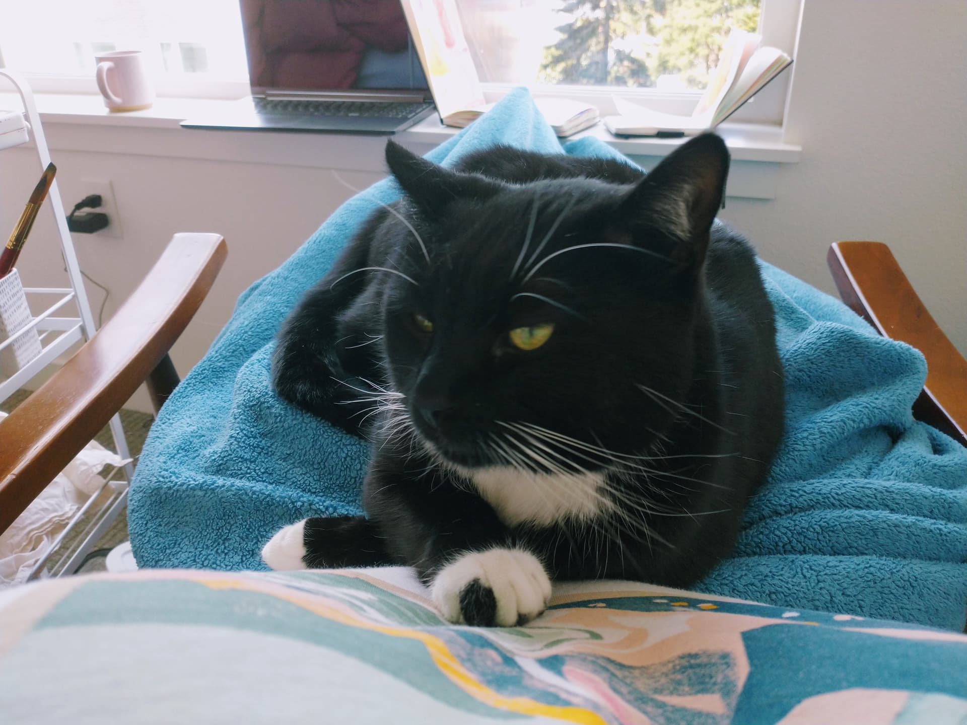 Someone decided I had done enough watercolor for the afternoon… I need a rolly side table with a swivel top so I can do stuff over his head.