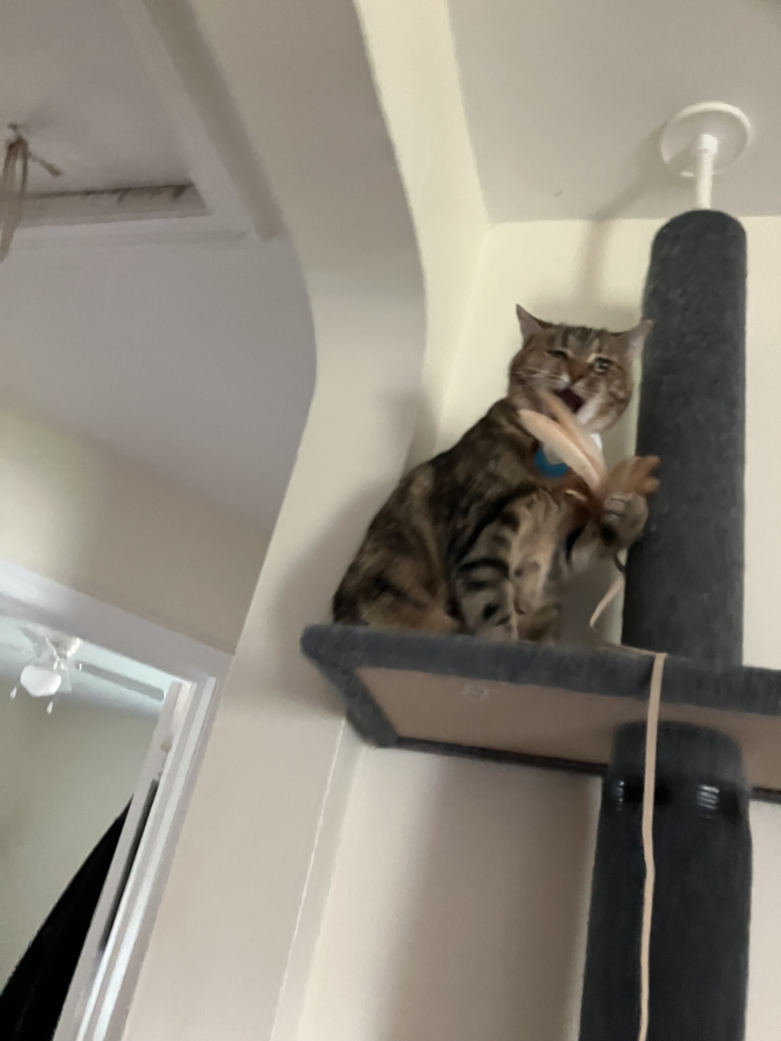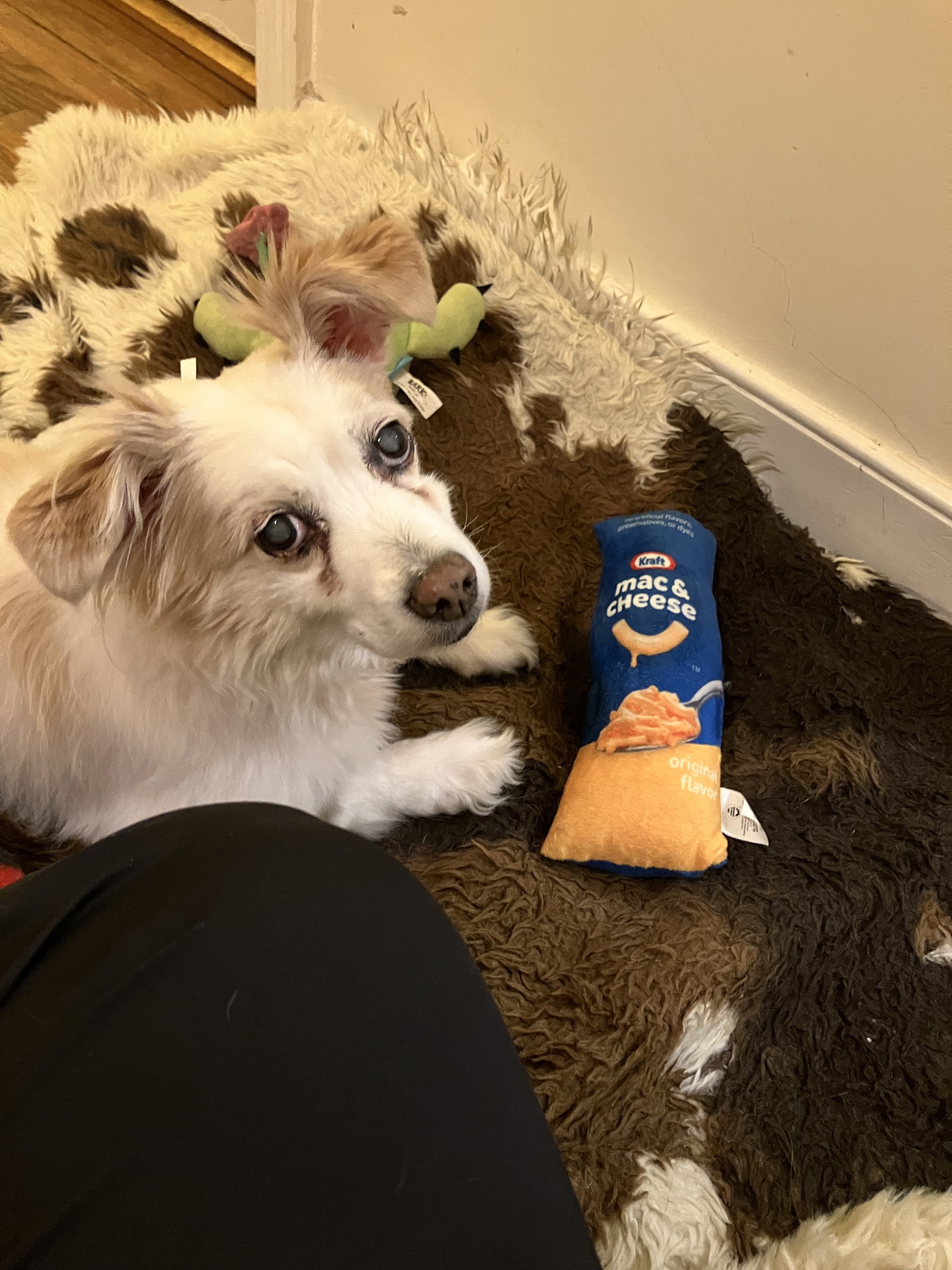 New food themed toy. Somehow I’m just realizing that the cat and dog both have primarily food themed toys: squeaky hamburger, crinkly pizza slice, catnip sushi set, and now Mac & Cheese!