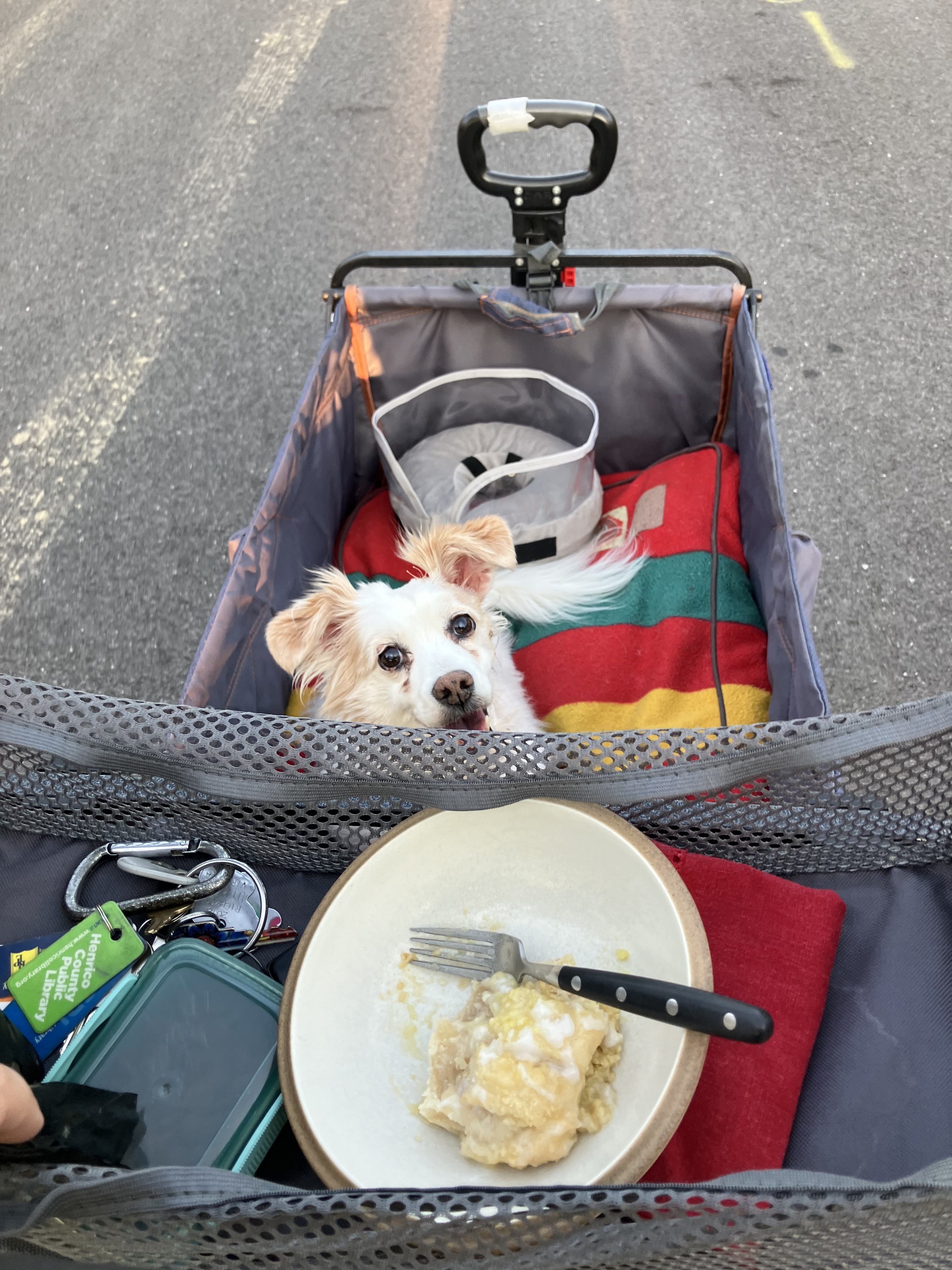 Pushing puppy around this evening while I eat a cheese danish. If there were ever neighborhood allegations of me being too normal, they would never stick 🫨👋
