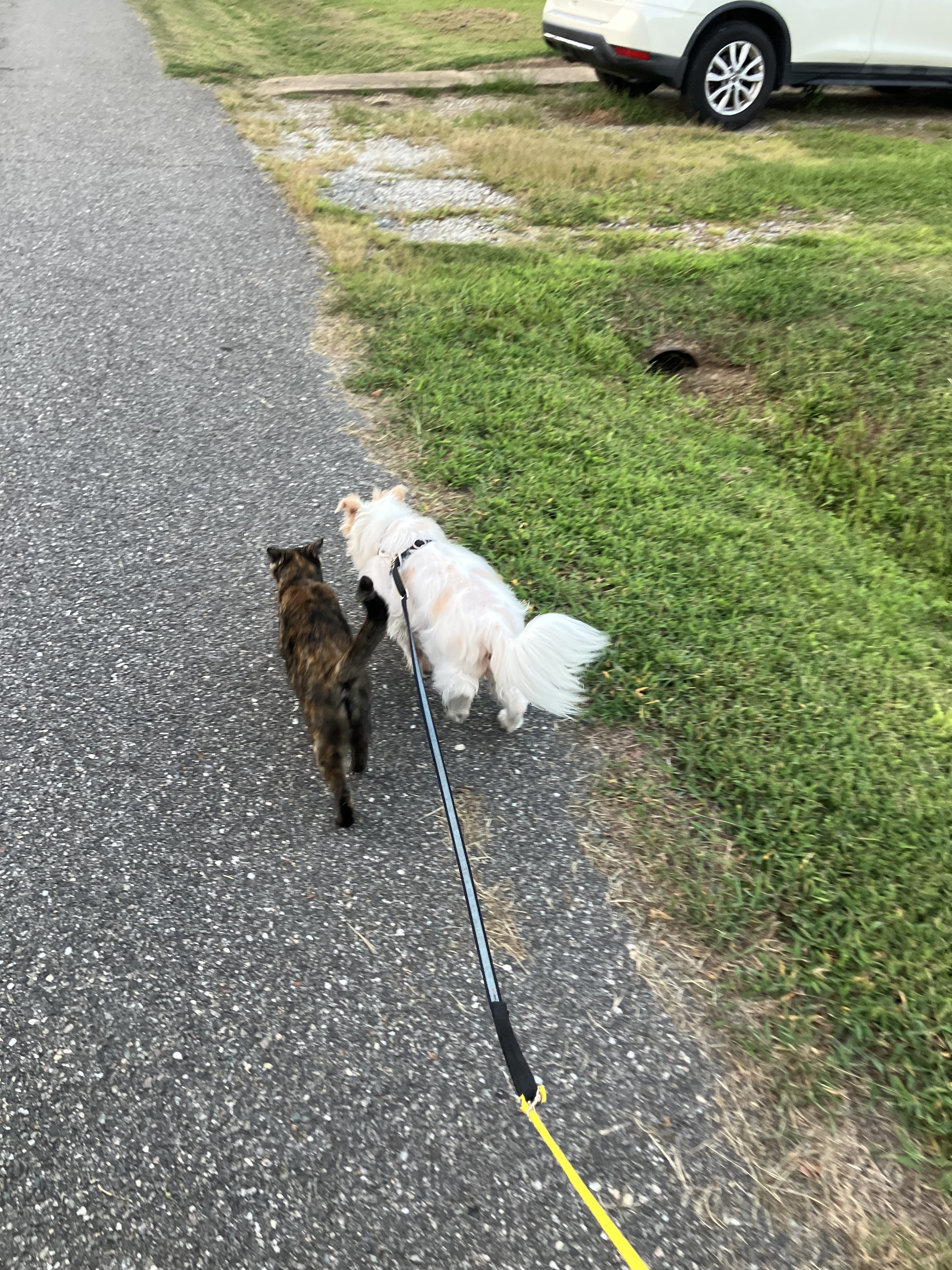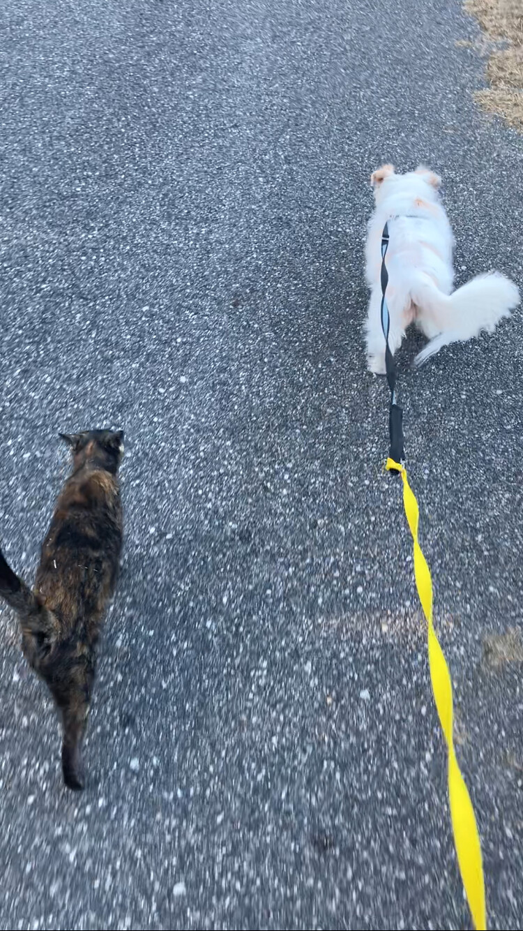 That is one of the neighborhood cats who sometimes joins us for our walk and seems to be obsessed with the dog.