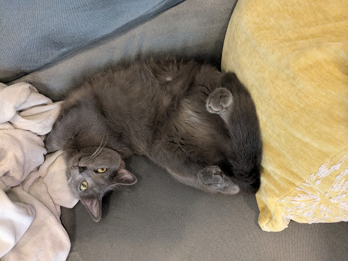 I have been gone most of yesterday and also today. Fun stuff! But I WFH only one day a week, and Mr. Kitty was concerned. I think he’s trying to keep me home.