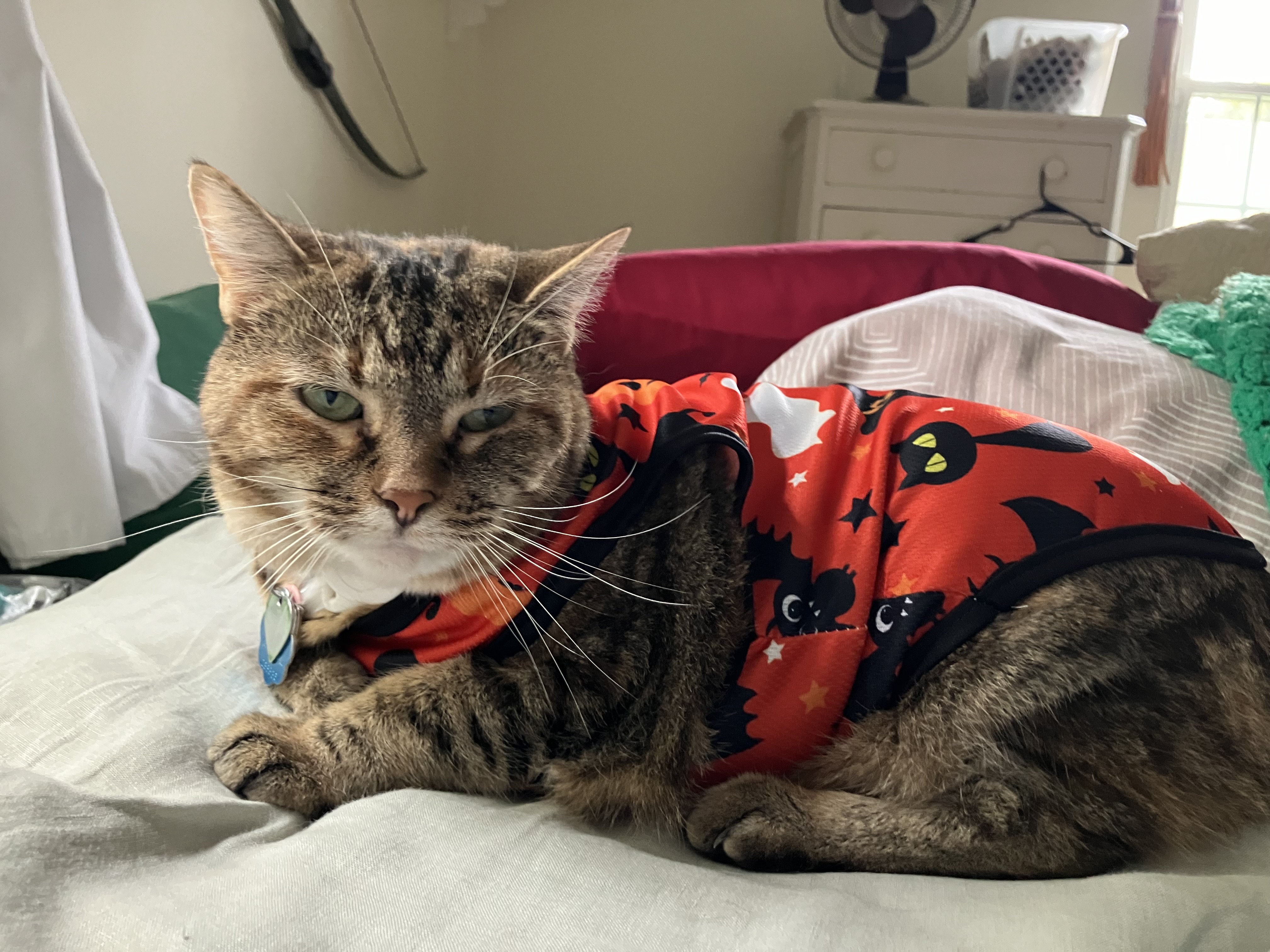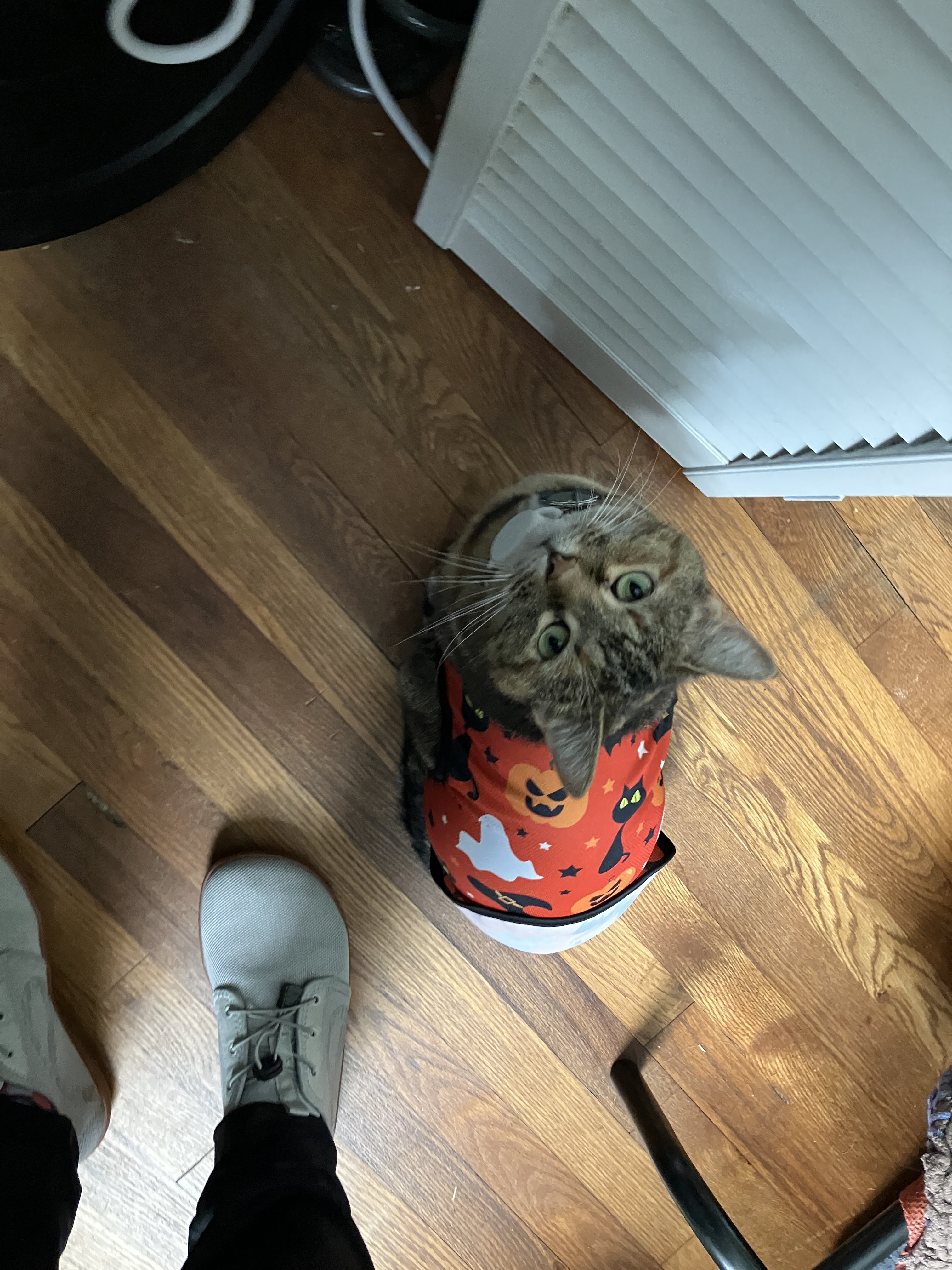 Blurry pics, BUT everyone tried on their Halloween outfits this past weekend. ![]()