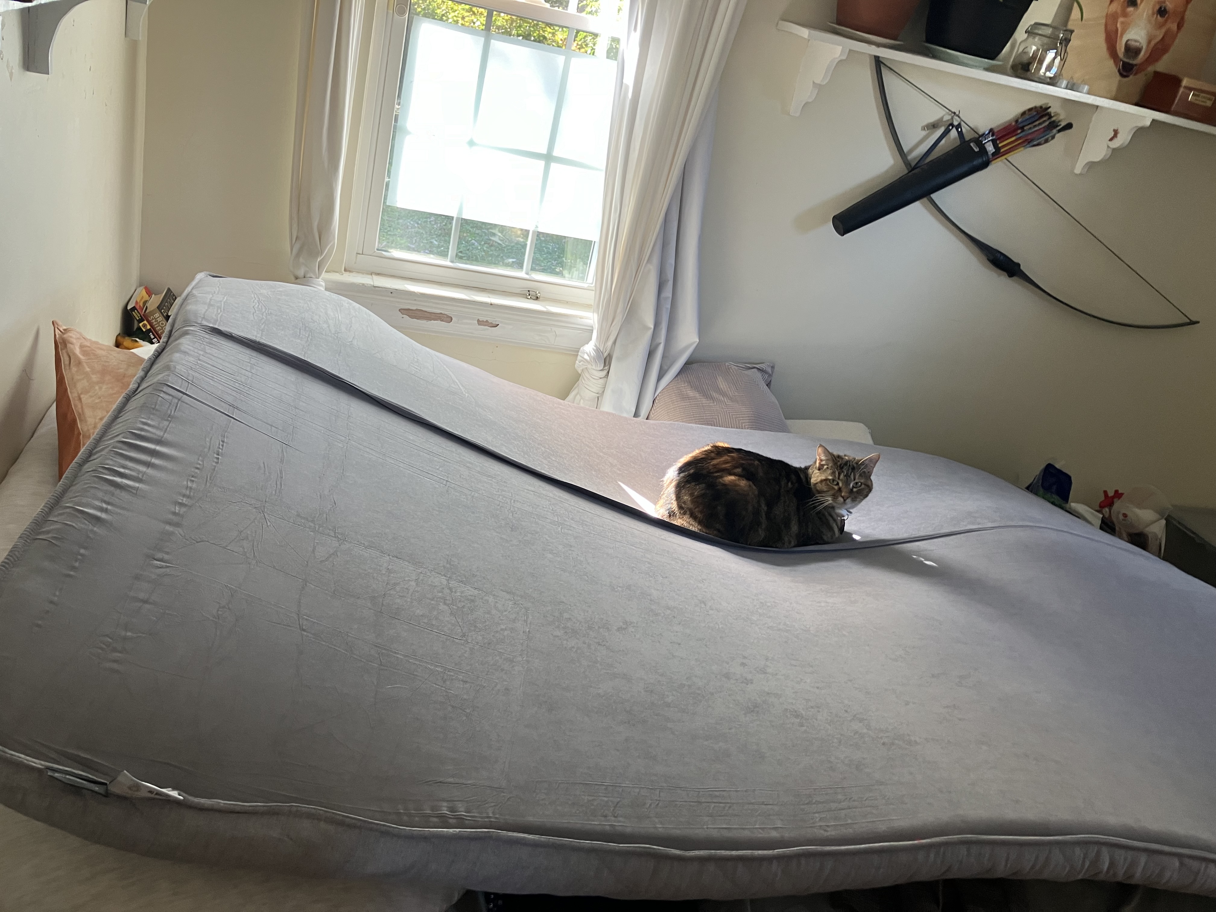 I set aside money and bought a new mattress for my floor sleeping set up. It needs 24 to 48 hours to expand so I laid it out on my old soon to be retired bed so that it has that space to expand.