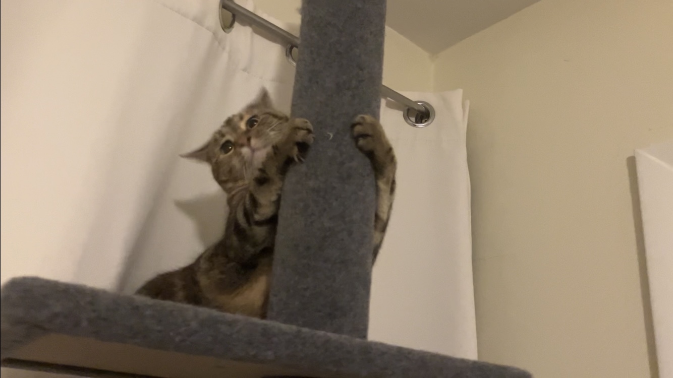 Blurry absolute madness on the cat tree right before bedtime last night.
