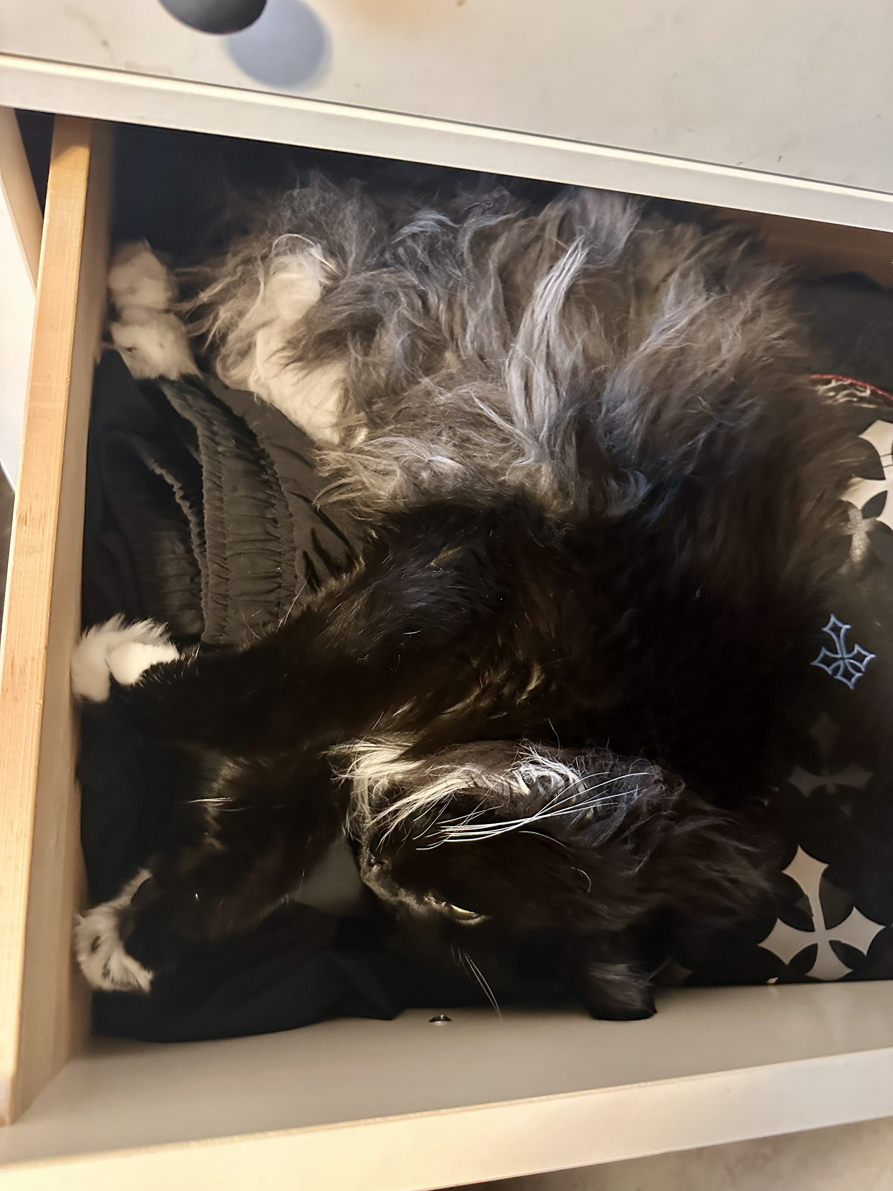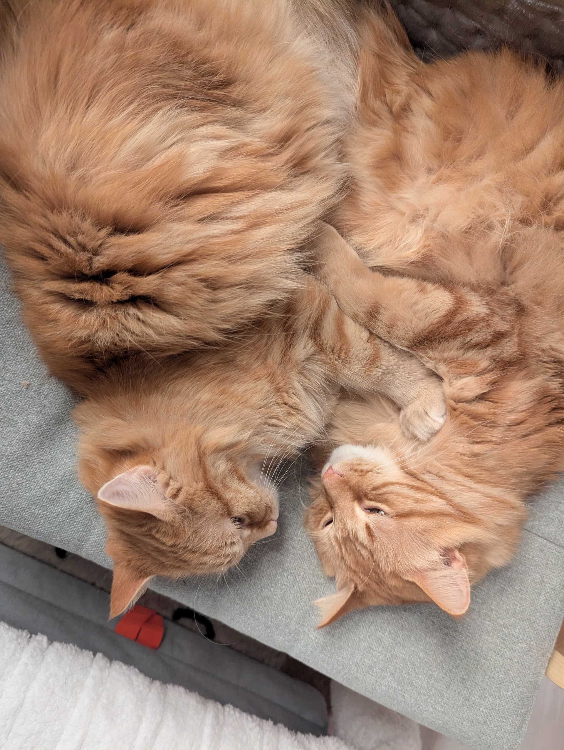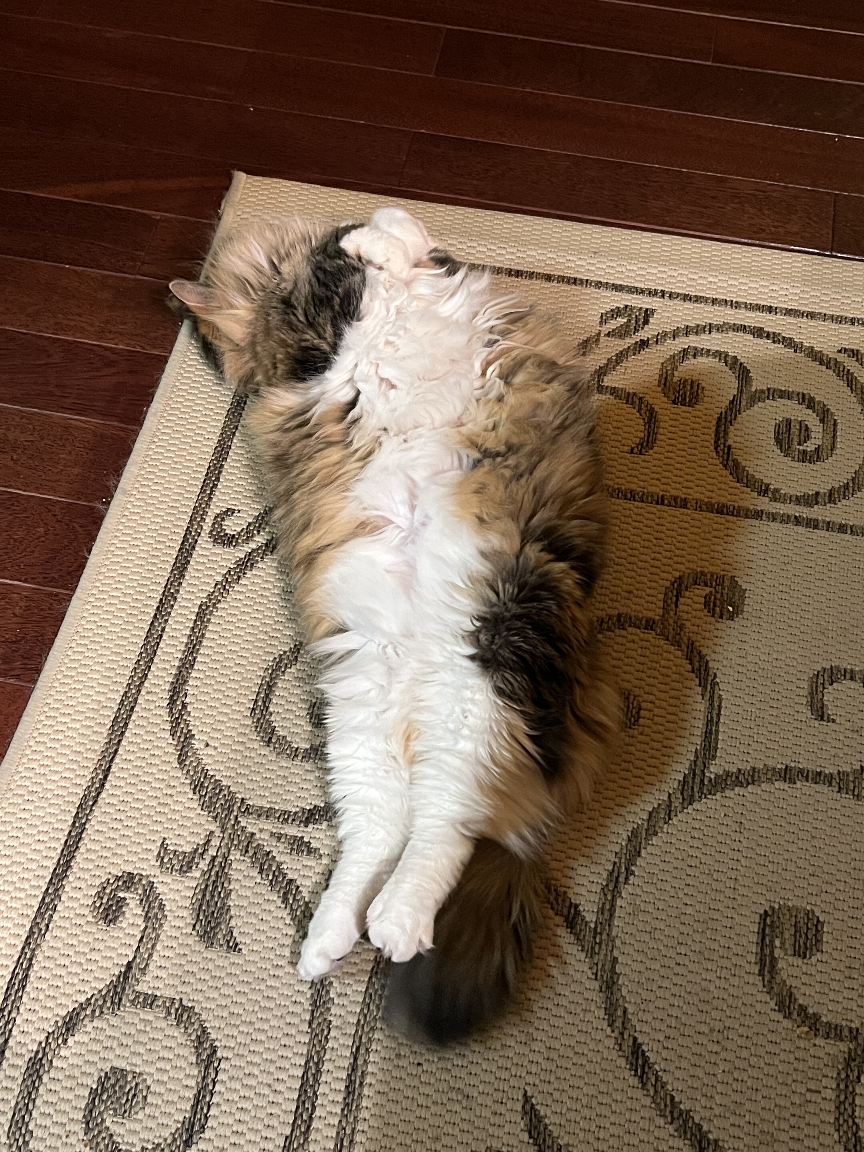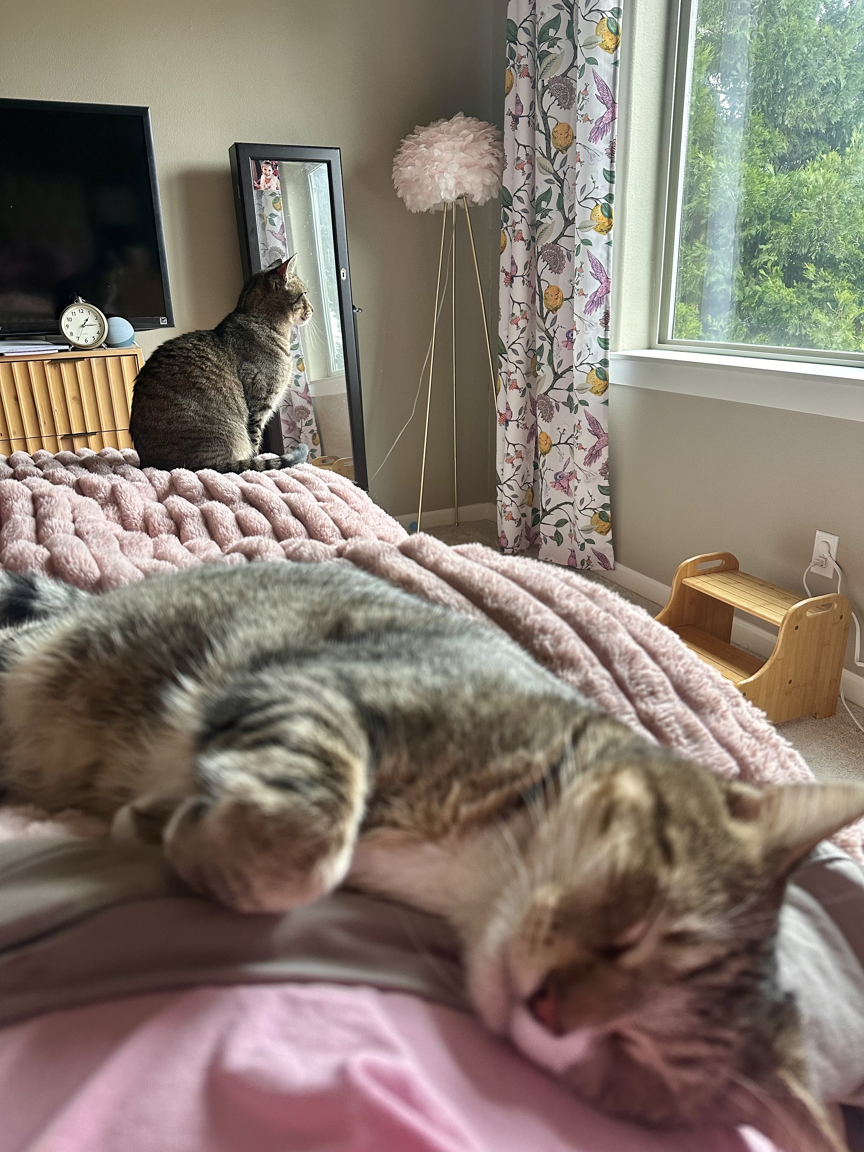 Not really. I guess, it’s a little better. But they still fight, especially the pee-er and her, and she’s still terribly prickly in general. The peeing mostly stopped, thank goodness! But there’s always the threat and I have to watch our own behaviors. Like, I know we can’t leave stuff on the floor because it might get peed on, especially clothes but you never know. Shoes have been targeted, bags, pillows. So we still have to be careful. And when Daughter comes home I have to remind her and she inevitably forgets and then something of hers gets peed on. I guess “new” things are more interesting/need to be claimed? Furniture seems to be safe now, though.