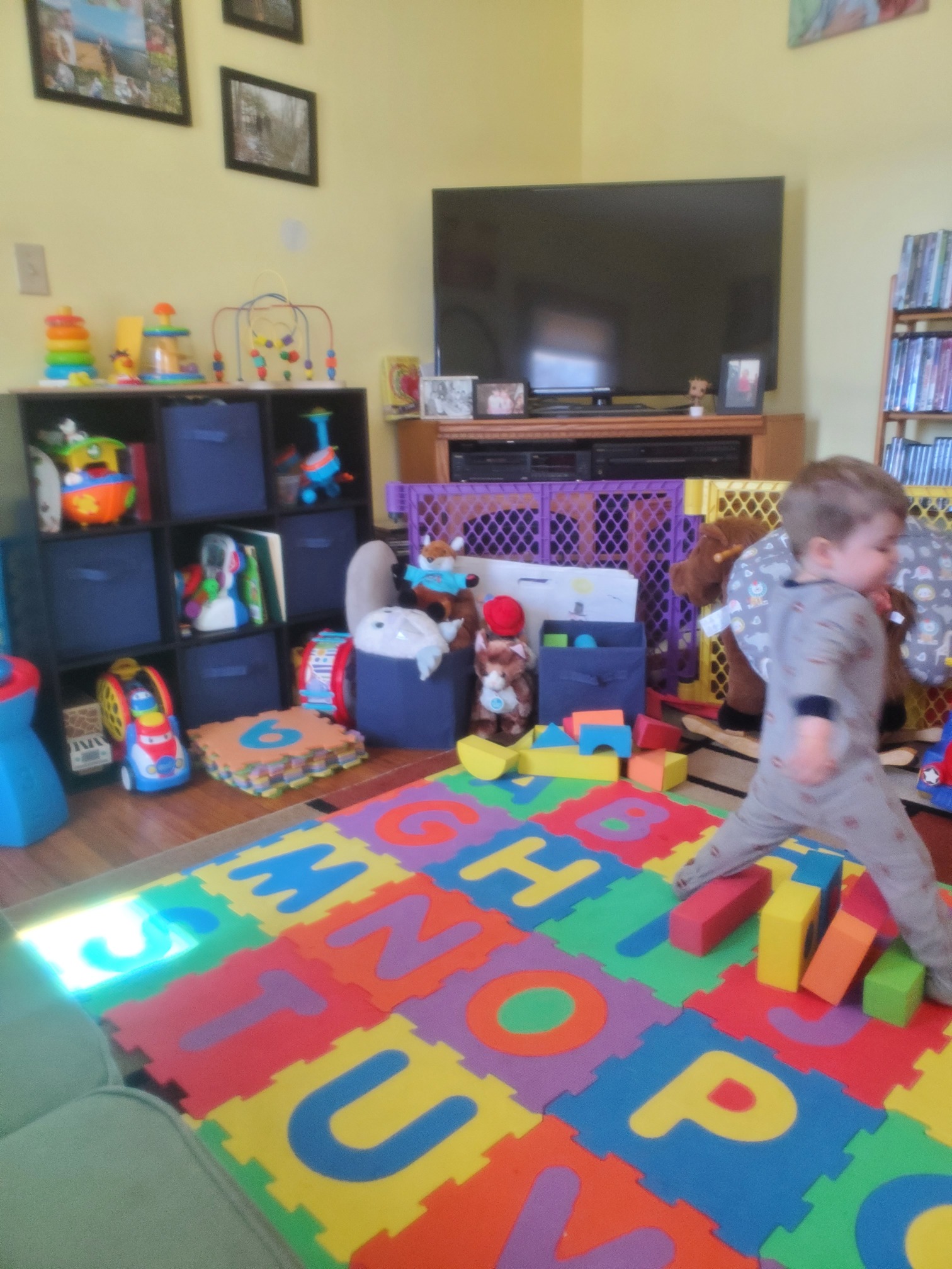 I feel you. That bookshelf thing with all the toys on it was a recent purchase because before that we just had all the toys in old diaper boxes. One of the best uses of $35 ever, the room feels some what functional now. Mr Pug was like “Oh I guess it does look better, now”