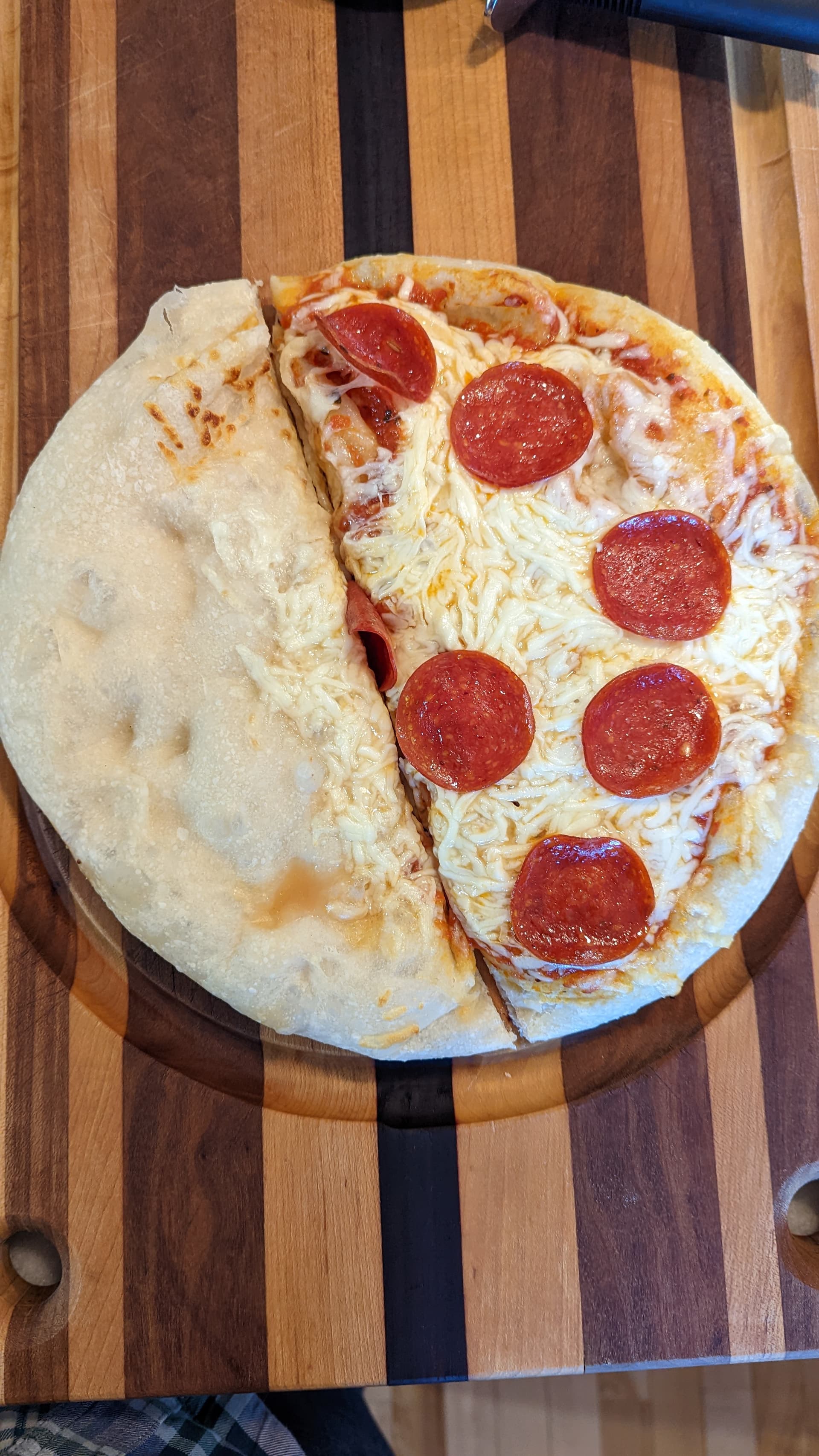 This is what my life has come to. Making a pizza for a toddler who decided today he does not like pizza, only crust.