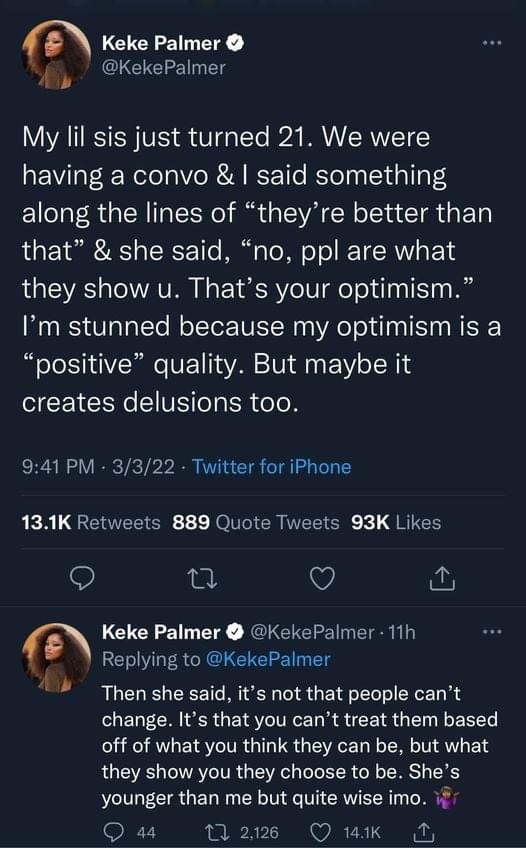 I have definitely made the mistake of being overly optimistic about people. But I still try to default to intentionally overtrusting and be proven wrong rather than default to cynical and take a long time to gain trust.