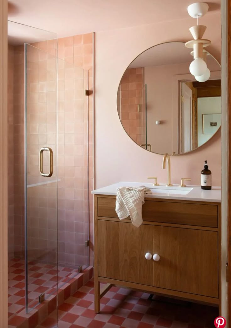 Ok I did some Pinterest-ing and I think I like pink+gold vibes better than black. If I do it to my upstairs guest bath and don’t love it, it is the lowest stakes since I don’t use it on a daily basis. I kind of like the idea of branching out! I found some pink tones I really like…