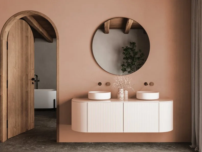 The second bathroom, not pictured is fully a guest bathroom that I never use except to water plants. I could see branching out more in there just because it would be fun and low stakes since no one would see it unless they were actually staying at my house. If you did pink/coral, would you do gold fixtures instead of black?