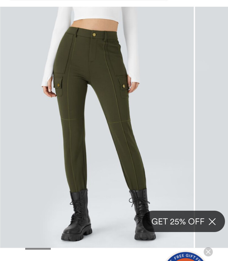 These are maybe a little closer, but look a little more like workout pants/less structured to me. Plus they’re mid rise. They have the thick waistband, but it’s floppity and lacks waist structure. When I view them in reviews on bodies similar to mine they don’t give the body aesthetic I want - likely due to the lack of structure and low waist. I’d be pulling them back up all day once I start sweating in them. Bummer.