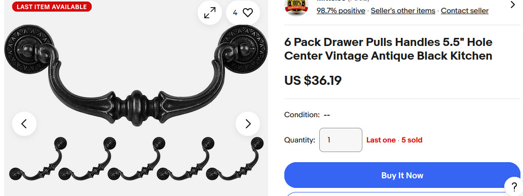 The problem is that I can’t find drawer pulls for the life of me. There are very, very few options for the size, which is 5.5" center to center, and the few that I have found look more like modern cabinet handles as opposed to pulls for a little girl’s dresser.